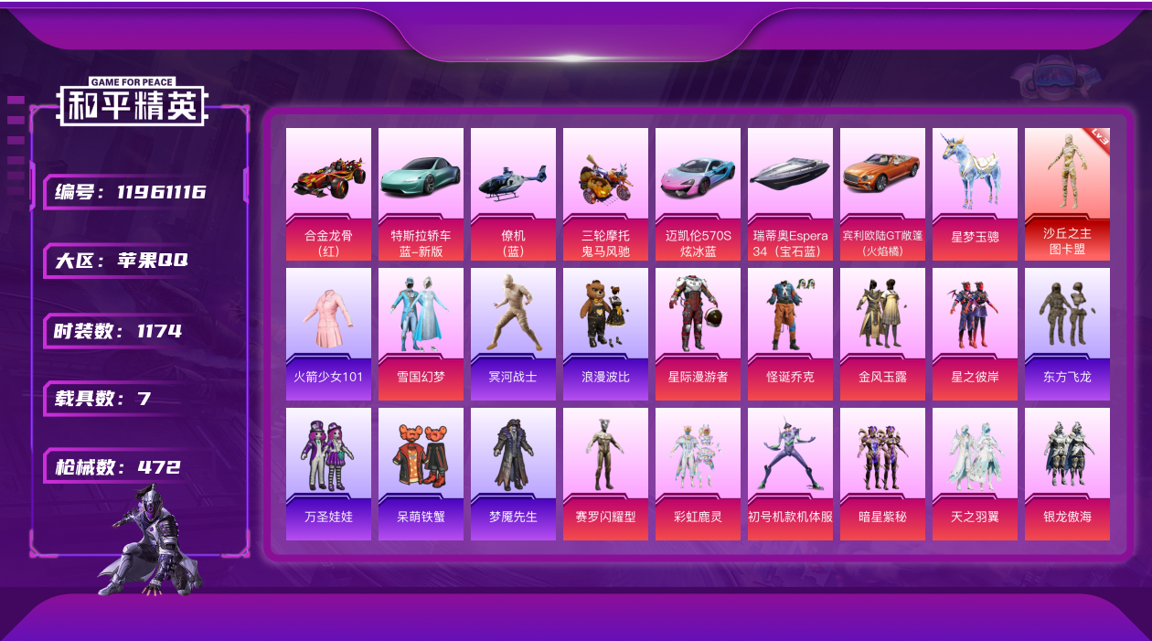 [11961116]HP0027 苹果Q 历史无敌战神 1红装8载具20粉装28特效枪 320套装472枪皮 沙丘之主-图卡盟 (3级) 火箭少女101 木乃伊 M416-黄金龙骨 AWM-黄金龙骨 SCAR-L-粉色回忆 宾利欧陆GT火焰橘 迈凯伦570S炫冰蓝 (4级) 合金龙骨红色 特斯拉R水滴蓝 星梦玉骢 瑞蒂奥(宝石蓝) (1级) 鬼马风驰 空客蔚蓝之翼僚机 紫螳螂 雪国幻梦 光极星 金风玉露 荧海星豚 怪诞乔克 未来领航者 星际漫游者 星夜魔法师 星之彼岸 赛罗闪耀型 紫电风暴 赤焰黑爵 骨龙祭渊 银龙傲海 彩虹鹿灵 天之羽翼 寒光使者 复仇流浪者 暗星紫秘 【28特效枪】 SCAR-L-梦幻火箭 (1级) M416-五爪金龙 (2级) M416-墨龙九天 (3级) P90-沙丘之主 (1级) M24-星之信仰 (4级) AKM-炫紫旋律 (1级) UMP45-雪国精灵 (4级) Kar98K-巳巳如意 (5级) M24-暗星紫秘 (5级) DP-28-豹影疾电 (5级) AUG-南国舞曲 (2级) AUG-星梦奇缘 (3级) P90-能量风暴 (6级) PKM-守护天翼 (4级) SCAR-L-天蓬元帅 (9级) GROZA-香水柠檬 (4级) M762-激战未来 (1级) Kar98K-暗翼战神 (1级) Kar98K-圣光天使 (5级) M416-至情至圣 (9级) 汤姆逊-怪笑疯兔 (4级) MG3-梦幻舞会 (4级) AKM-梦之光华 (5级) M762-冷魅冰骑 (5级) AWM-焰龙焚天 (4级) M416-风花雪月 (1级) SCAR-L-机甲封神 (4级) 破片手榴弹-粉粉猫爪 (6级) 龟仙人 太空漫步 雪山精英 东方飞龙 梦魇先生 呆萌铁蟹 万圣娃娃 激萌罗小黑 沙漠守护者 浪漫波比 金羽特工 怪笑疯兔 诡面顽熊 暗影哥特 迪迦奥特曼 赛罗奥特曼 SS1特训 团圆交子 瑞龙福将 星河浪客 粉红小猪 狂沙舞者 冰爽海盐 蓝甜马卡龙 机械英豪 破蛋小黄鸡 风华少年志 白月香洋装 黑色刀锋 军刀雅典娜 弄潮海豚 M762-瑞龙福将 M24-香水柠檬 MK47-林间仙鹿 GROZA-林间仙鹿 龙翔九天飞行器 炫紫旋律飞行器 繁花小夜曲飞行翼 暗翼战神飞行器 梦幻火箭飞行器 相思残雪飞行器 星之信仰飞行翼 风花雪月飞行器 焰龙焚天飞行器 幻海精灵飞行器 繁龙极客飞行器 镜光幻境飞行翼 炎氏战神飞行翼 黄族统领飞行器 纯梦嫁纱飞行翼 太空嘟嘟飞行器 星夜魔法师飞行翼 冷魅冰骑飞行器 天之羽翼飞行器 银河战甲头盔 梦幻火箭头盔 雪国精灵头盔 百万伏特头盔 深海小丑鱼头盔 金羽特工头盔 梦幻火箭背包 雪国精灵背包 百万伏特背包 金风玉露背包 金羽特工背包
