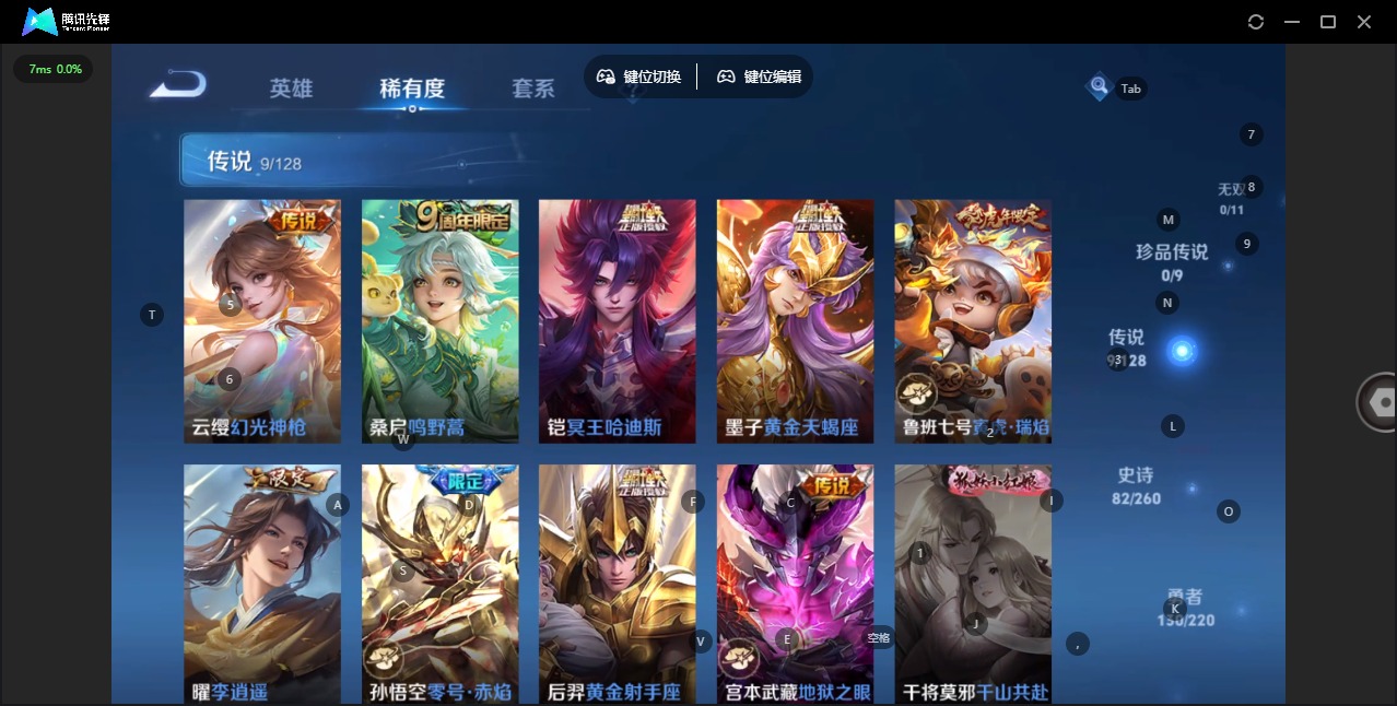 - [11415892]V7 9传说 123英雄 144皮肤 可修改实名 优质装备:一念神魔,末日机甲-孙尚香(绿蚂蚱),淬星耀世,超时空战士-狄仁杰,山海·苍雷引(电光曜子),涂山容容 传说皮:幻光神枪 珍宝阁皮:妄想食味 限定皮:愿照·九州拓(澜年限),怒海麟威,五谷丰年,逐梦之影,孙行者,匿光追影者,寅虎·赤拳(老虎年限),山海·玄木吟(马可年限) 史诗皮:紫霞仙子,苍穹之光,白龙吟,千年之狐,永昼,江河有灵,蒙恬荣光圣徽,无限星赏官,偶像歌手,晚萤,末日机甲-吕布,猫狗日记-孙策,水果甜心,绅士熊喵,功夫厨神,暗隐猎兽者,幽灵船长,鬼剑武藏,舞动绿茵,地狱岩魂,乘风破浪,逐浪之夏,水晶猎龙者,金属风暴,圣诞狂欢,鹰眼统帅,赏金猎手
