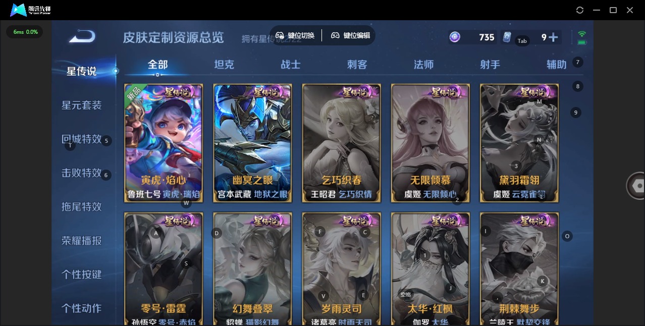 - [11739451]V10 5典藏 5无双 8珍品传说 64传说 125英雄 509皮肤 可修改实名 优质装备:鸣剑·曳影,全息碎影(猴子典藏),九霄神辉(木兰典藏),银白咏叹调(倪克斯侍卫),弑枪猎影(韩信典藏),真我赫兹(瑶)(瑶无双),小乔时之魔女(小乔无双),韩信群星魔术团(韩信无双),器灵·螭龙剑,天机白泽,江户川柯南,怪盗基德,器灵·落星盏,酷洛米之心,大耳狗之梦,朽木白哉,黑崎一护,黄金狮子座,黄金射手座,冠军飞将,云鹰飞将(小将军),绛天战甲(鸡嘴战神),猫影幻舞,久胜战神,炽阳神光,一念神魔,末日机甲-孙尚香(绿蚂蚱),地狱火,仲夏夜之梦(大飞蛾),音你心动-小乔,零号·赤焰,海洋之心,地狱之眼,音你心动-周瑜,胖达荣荣,李逍遥,乞巧织情,时之恋人-刘备(电焊工),淬星耀世,超时空战士-狄仁杰,末日机甲-孙策,挚爱之约,无双飞将,音你闪耀(rap皮),碎云,浮生妄,记忆之芯(机甲兔),妄想实况,妄想奇谈,惊梅引,澜逐花归海,艾琳觅芳踪,千劫归真,诡秘之主,千山共赴,涂山容容 珍品传说:时之奇旅-孙策 传说皮:典韦战鼓燎原,落雪白狼,死亡执政官,九山相柳,星之鸣奏,祥瑞亨通,幻光神枪 珍宝阁皮:万物之道,蔷薇恋人,女武神 限定皮:愿照·九州拓(澜年限),愿照·福禄聚(蔡文姬年限),愿照·岁时盈(虞姬年限),愿照·山河定(司空震年限),愿照·众生和(妲己年限),愿照·千秋盛(女娲年限),逐霄战戟,鸣野蒿,至尊宝,白虎志(电光耗子),武陵仙君(小桃花),傲雪梅枪,绯月行,白鹤梁神女,时雨天司(水龙头),神威(电光马子),飞衡(韩信年限),山海·碧波行(瑶年限),至美·乘鲤谣,至美·化雀舞,遇见飞天,高山流水,诗剑行,怒海麟威,五谷丰年,武圣,游园惊梦,梁祝,逐梦之翼,天狼溯光者,虎魄,天狼征服者,天狼绘梦者,李小龙,逐梦之影,朱雀志(守约年限),永曜之星,辉光之辰,孙行者,猪悟能,大圣娶亲,引擎之心,乒乒小将,蜜橘之夏,寅虎·御盾(廉颇年限),百木心枪,玉兔公主,启示之音,深海之息(深海大菠萝),山海·玄木吟(马可年限),冰霜神祇 史诗皮:赞萌露比,鸭鸭历险记-刘禅,苍鳞隐世,器灵·浮梦炉,糖绘人间,瑰影绮梦,化蝶舞,灵蛊蚀心,星界战将,龙之律动,雪豹·霜爪,布丁狗之誓,小牛鸭,石田雨龙,百相守梦-周瑜,戍鼓铭心,茶境仙,幻珠鲛人,怒海争锋,破空之剑,战舞者,涂山红红,