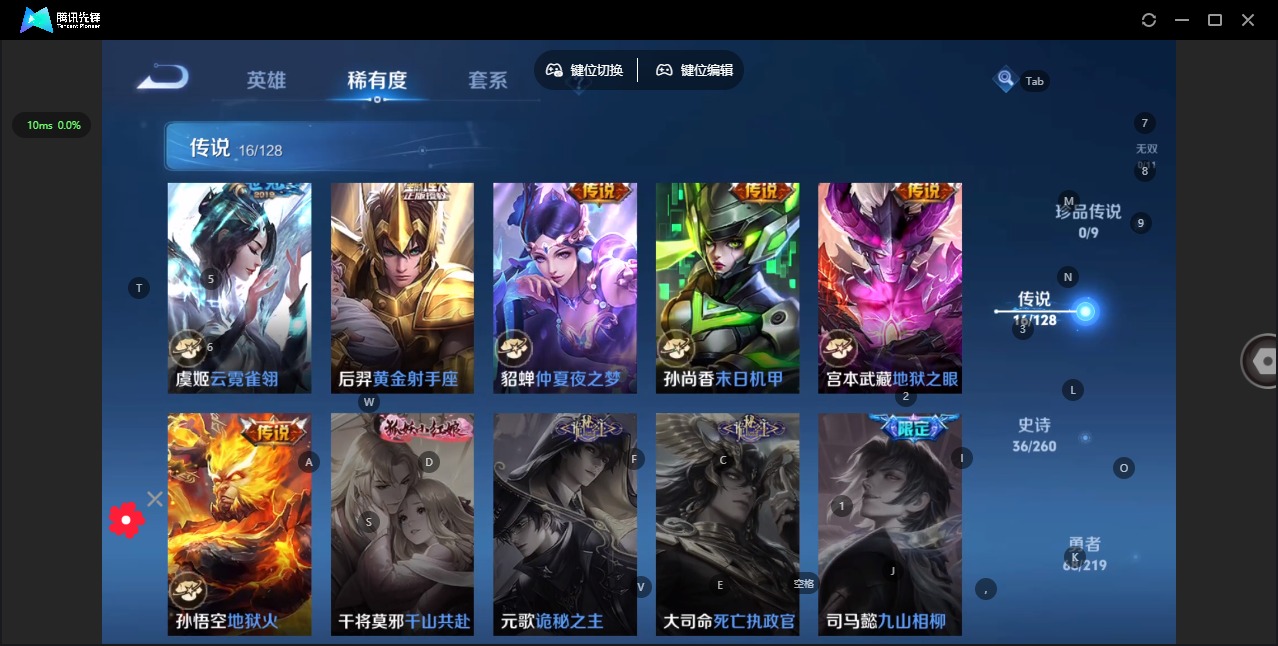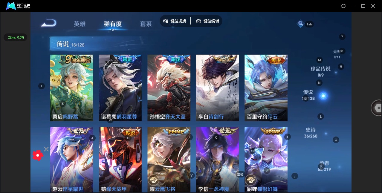 - PX_2104929-Q/至尊星耀/265皮肤/123英雄/0典藏/0珍品无双/0无双/0珍品传说/14传说/69史诗/7稀有英雄 【14 传说皮肤】胖达荣荣 梦奇,无双飞将 马超,地狱火 孙悟空,凤求凰 李白,猫影幻舞 貂蝉,地狱之眼 宫本武藏,炽阳神光 镜,黄金狮子座 达摩,一念神魔 李信,战鼓燎原 典韦,冠军飞将 花木兰,愿照·九州拓 澜,愿照·山河定 司空震,鸣野蒿 桑启, 【69 史诗皮