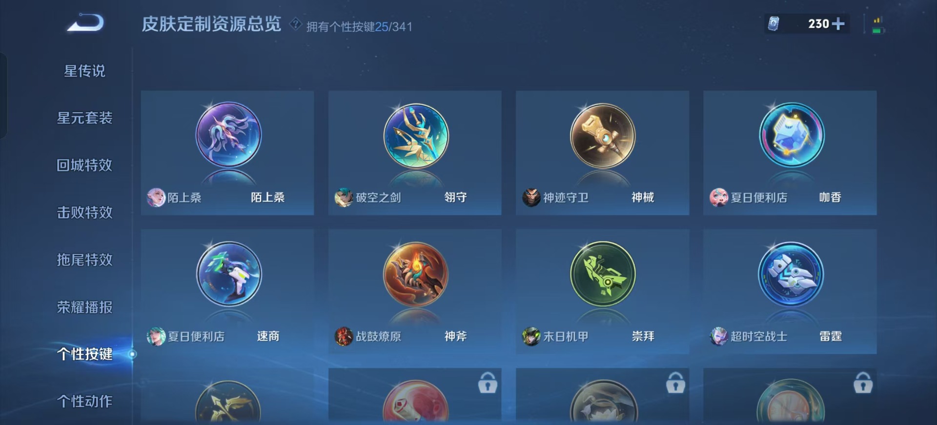 宫本武藏鬼剑武藏,兰陵王暗隐猎兽者,貂蝉圣诞恋歌,白起星夜王子,伽罗箭羽风息,亚瑟心灵战警,嬴政摇滚巨星,小乔青蛇,孙尚香时之恋人,孙策猫狗日记,赵怀真器灵·浮梦炉,百里守约特工魅影,李元芳逐浪之夏,吕布圣诞狂欢,吕布末日机甲,蔡文姬舞动绿茵,司马懿暗渊魔法