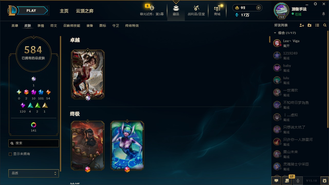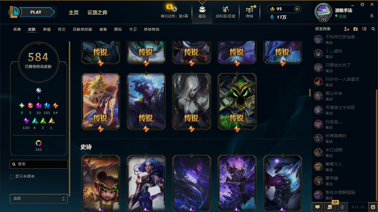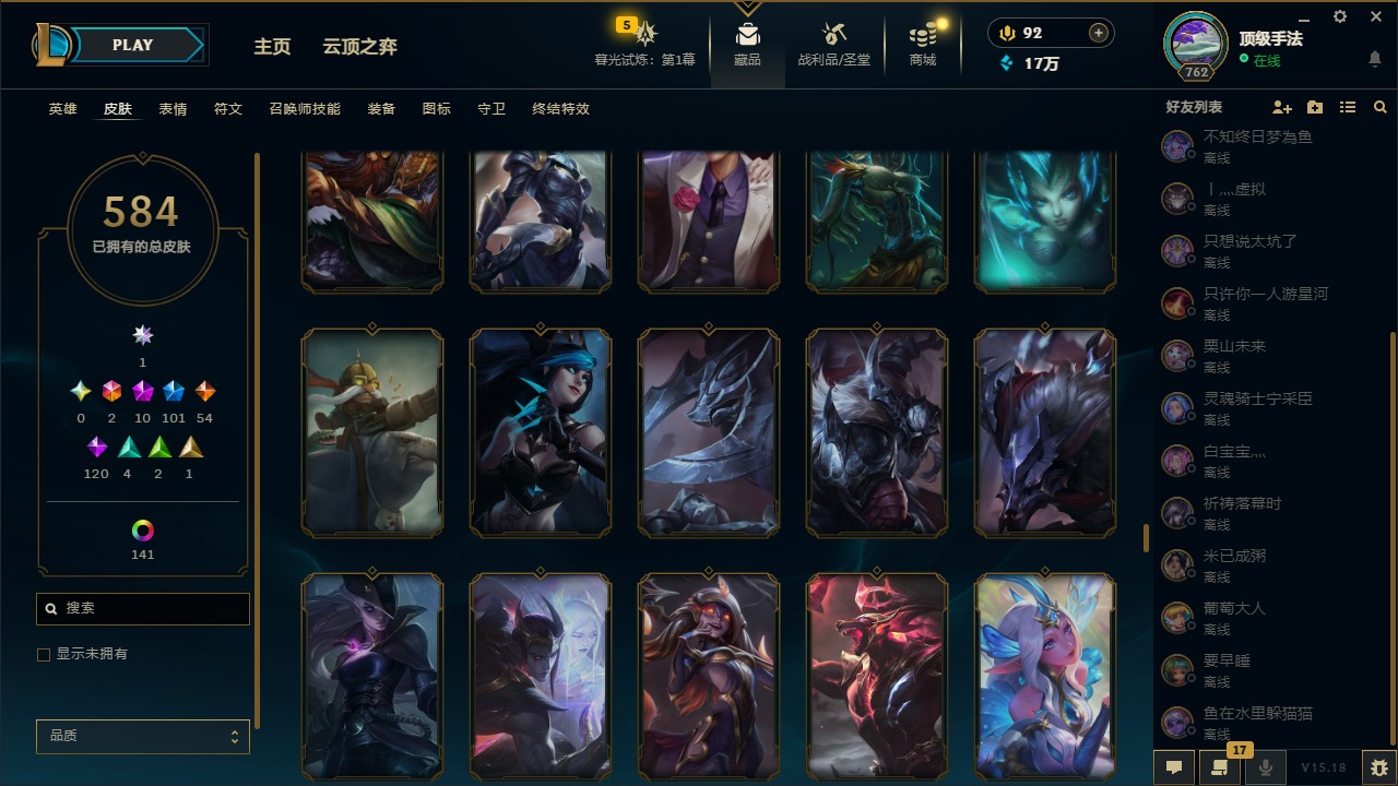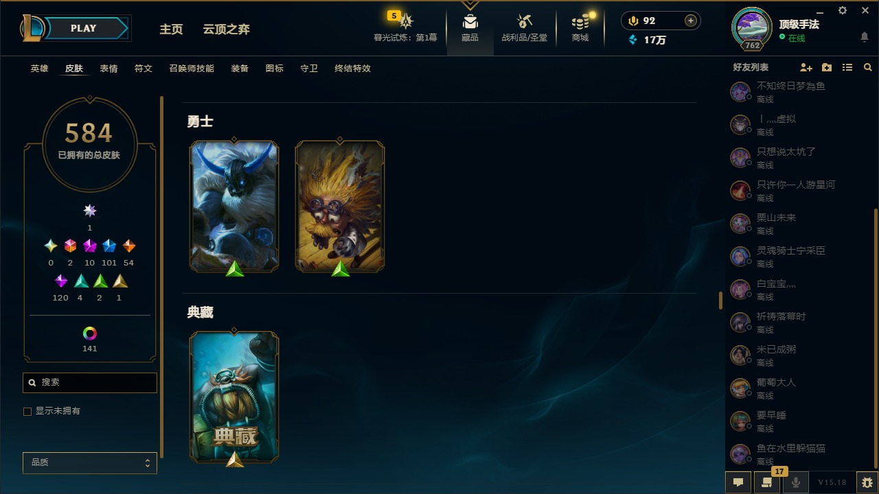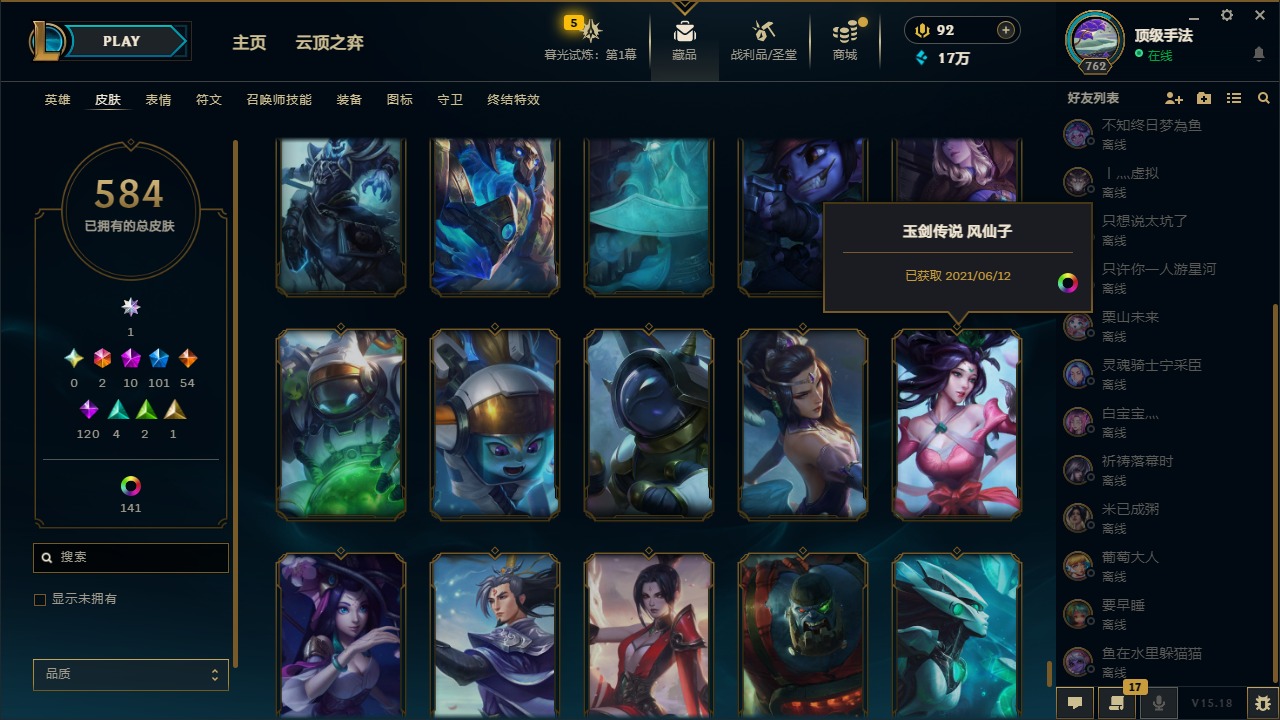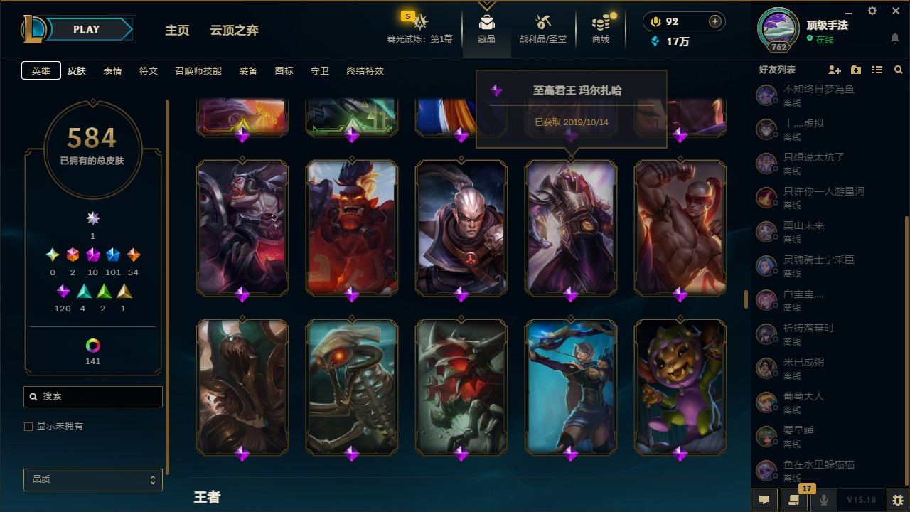 [11964614]2终极 10神话 101限定 54传说 120史诗 584皮肤 156炫彩 171英雄 可二次 可修改实名 优质装备:至臻 电玩女神 凯特琳,至臻 原计划:逆流 塞拉斯,源代码 乐芙兰,防爆天使 凯尔,巧克力工坊 波比,地底世界 崔斯特,电玩战魂 人马,都铎王朝 图奇,防爆机器人 布里茨,防爆士兵 炼金,防爆士兵 格雷福斯,冠军之箭 艾希,冠军之矛 滑板鞋,冠军之刃 锐雯 2016,冠军之血 希瓦娜,红桃杰克 崔斯特,克格汪 克格莫,蒙多蒙多,密林猎手 提莫,野兽猎人 德莱文,野兽猎人 瑟庄妮,野兽猎人 泰达米尔,勇者 阿狸,征服者 韦鲁斯,至臻 神凰行者 烈羽焰凰 霞,灵魂守卫,DJ-娑娜,玉剑传说 无影 竞星,冠军之刃 锐雯 2016 凯旋圣装,霸天异形 卡兹克 掠空魅影,无畏骑士 瑟庄妮 赤子初心,咖啡甜心 金克丝 核桃巴菲,净雪之月 莫甘娜 冬虹,墨之影武者 亚索 金墨耀影,十五周年纪念 希维尔,心之钢 伊泽瑞尔 天纵才华,魔女 阿卡丽 虚荣,殿堂传奇 卡莎,殿堂传奇 薇恩,暗裔英雄 盖伦,殿堂传奇 薇恩 登神 海克斯:摄魂 薇恩,海克斯 安妮 限定:斗魂觉醒 佛耶戈,玉剑传说 翼剑仙,钢铁军团 拉克丝 情人节限定:觅心猎手 薇恩,觅心萝莉 金克丝,觅心游侠 卢锡安 赛季限定皮:胜利凤凰 艾尼维亚,胜利之运 崔斯特,胜利剑圣 易,胜利女神 娑娜,胜利巨口 克格莫,胜利之王 泰达米尔,胜利枪神 格雷福斯,胜利女神 奥利安娜,胜利之剑 剑魔,胜利枪神 卢锡安,胜利机器人 布里茨,胜利女神 瑟庄妮 冠军限定系列:S13 T1 李青,S1FNC 酒桶,S2 暗杀星 努努,S2 暗杀星 慎,S3 SKT T1 薇恩,S3 SKT T1 李青,S4 SSW 图奇,S4 SSW 炼金,S5 SKT T1 瑞兹,S5 SKT T1 滑板鞋,S5 SKT T1 蜘蛛,S6 SKT T1 奥拉夫,S6 SKT T1 烬,S6 SKT T1 艾克,S6 SKT T1 球女,S6 SKT T1 扎克,S6 SKT T1 娜美,S8 IG 卡莎,S9 FPX 薇恩,S10 DWG 蕾欧娜,S10 DWG 奈德丽,S11 EDG 格雷福斯,S11 EDG 佐伊,S12 DRX 凯特琳 冰雪节限定:“主人不要我了” 阿木木,冰雪风暴 希维尔,冰雪节 格雷福斯,冰雪节 炼金,冰雪兽 纳尔