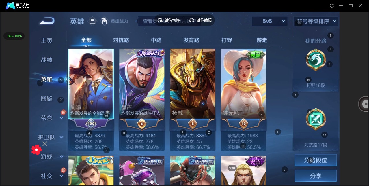 - [11294709]V7 8传说 122英雄 192皮肤 可修改实名 优质装备:云鹰飞将(小将军),久胜战神,一念神魔,乞巧织情,画中仙,记忆之芯(机甲兔),鹤羽星尊 珍宝阁皮:优雅恋人 限定皮:鸣野蒿,五谷丰年,游园惊梦,梁祝,天狼绘梦者,李小龙,大圣娶亲,云端筑梦师 史诗皮:龙之律动,黄金分割率,江河有灵,蒙恬荣光圣徽,偶像歌手,魅语,青蛇,末日机甲-吕布,时之恋人-孙尚香,乱世虎臣,节奏热浪,女仆咖啡,摇滚巨星,水果甜心,星夜王子,心灵骇客,德古拉伯爵,幽灵船长,鬼剑武藏,繁星吟游(呼啦呼啦),曙光守护者,金属风暴,圣诞狂欢,鹰眼统帅,魅力维加斯,未来纪元-赵云