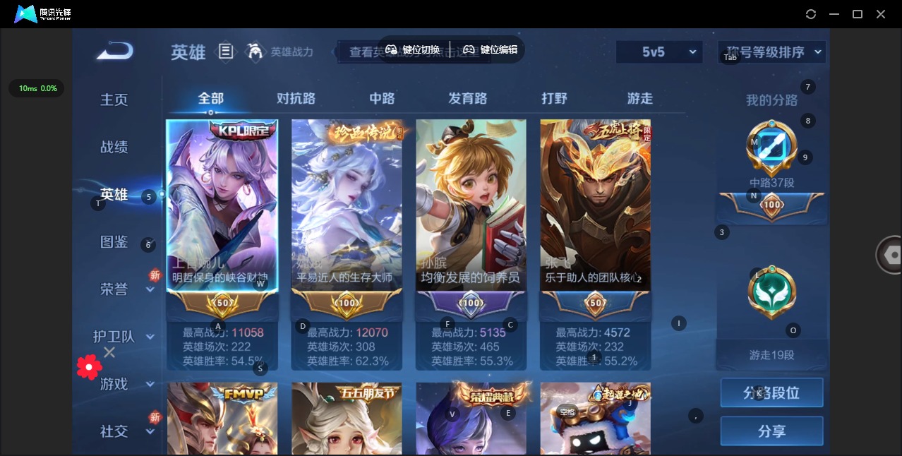 - [11713532]V5 3传说 69英雄 78皮肤 可修改实名 优质装备:无双飞将 限定皮:愿照·九州拓(澜年限),逐霄战戟,鸣野蒿,傲雪梅枪,百木心枪 史诗皮:化蝶舞,龙之律动,茶境仙,百相守梦-百里守约,紫霞仙子,冰冠公主,偶像歌手,龙骑士(小龙虾),水果甜心,星夜王子,功夫厨神,鬼剑武藏,暗渊魔法,天秀·启明,逐浪之夏,曙光守护者,圣诞狂欢,鹰眼统帅