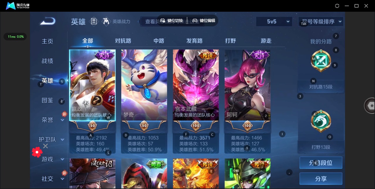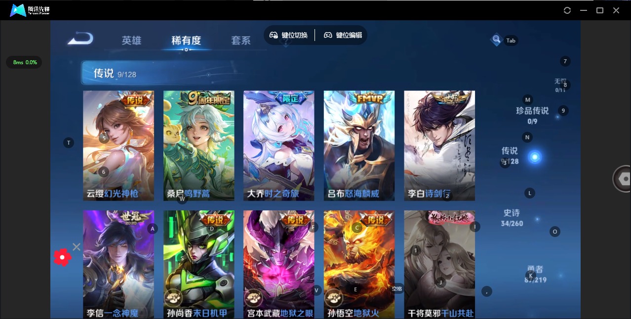 - [12025042]V7 11传说 53英雄 69皮肤 可修改实名 优质装备:云鹰飞将(小将军),猫影幻舞,炽阳神光,一念神魔,仲夏夜之梦(大飞蛾),飞鸢探春,乞巧织情,游龙清影(小青龙),淬星耀世,无双飞将,碎云 限定皮:时之奇旅-妲己 史诗皮:遇见神鹿,特工魅影,青蛇,偶像歌手,白蛇,晚萤,时之恋人-孙尚香,节奏热浪,诗语江南,曙光守护者,热力回旋,箭羽风息,唤灵魅影,圣诞恋歌,鹰眼统帅,魅力维加斯,赏金猎手,千筹问战,未来纪元-赵云