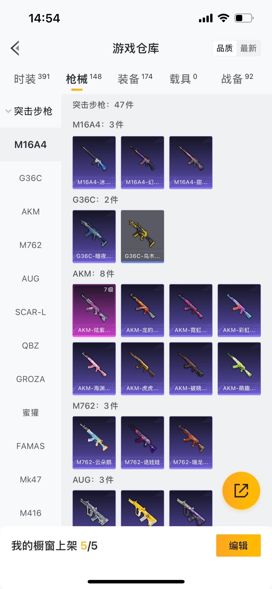 AKM-炫紫旋律,SCAR-L-童趣迷兔,SCAR-L-青春物语,M416-电玩时刻,Kar98K-巳巳如意,MG3-洛神天依