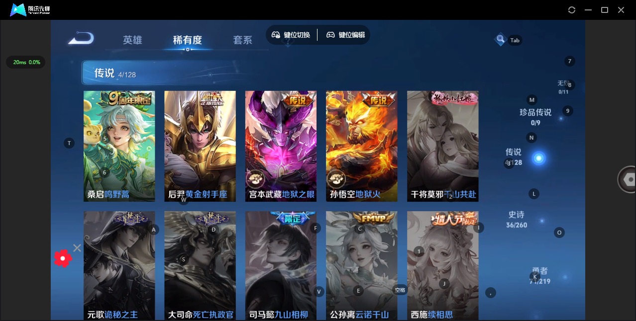 - PX_2093390-00 苹果QQ/绝世王者/210皮肤/124英雄/1典藏/0珍品无双/0无双/0珍品传说/13传说/61史诗/8稀有英雄 【1 典藏皮肤】鸣剑·曳影 李白, 【13 传说皮肤】无双飞将 马超,云鹰飞将 曜,齐天大圣 孙悟空,地狱之眼 宫本武藏,曦玄引 吕布,时之恋人 刘备,黄金狮子座 达摩,山海·炽霜斩 李信,淬星耀世 赵云,琥珀纪元 马超,愿照·九州拓 澜,愿照·山河定 司