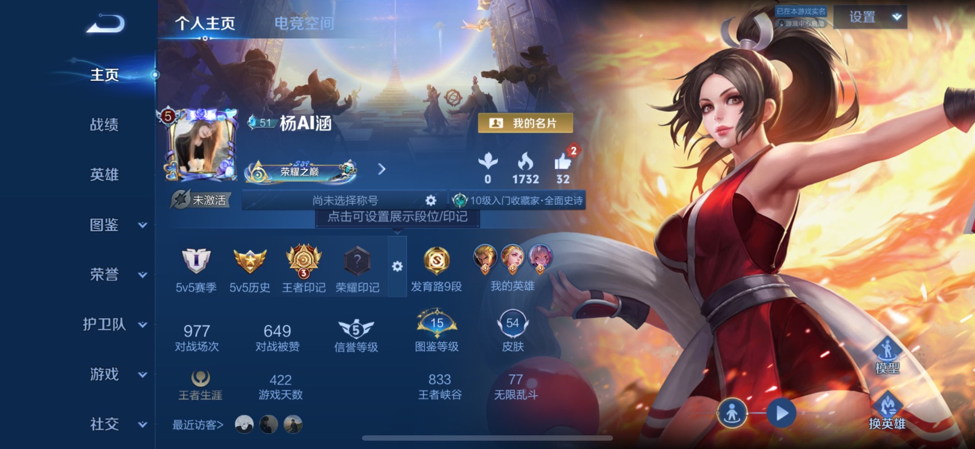 - [12265773]V7 1典藏 1珍品传说 3传说 109英雄 99皮肤 可修改实名 优质装备:赤影疾锋,朽木白哉,涂山容容 传说皮:死亡执政官 限定皮:愿照·山河定(司空震年限),鸣野蒿,至尊宝,至美·乘鲤谣 史诗皮:飞车小橘子,器灵·浮梦炉,化蝶舞,龙之律动,百相守梦-周瑜,茶境仙,百相守梦-黄忠,星界特工,撼地雄心,破空之剑,百相守梦-百里守约,光弋星穹,紫霞仙子,千年之狐,冰冠公主,偶像歌手,龙骑士(小龙虾),暗夜猫娘,节奏热浪,摇滚巨星,绅士熊喵,星夜王子,功夫厨神,德古拉伯爵,幽灵船长,鬼剑武藏,暗渊魔法,地狱岩魂,乘风破浪,逐浪之夏,曙光守护者,鹰眼统帅,魅力维加斯,黎明之约,雪上飞焰