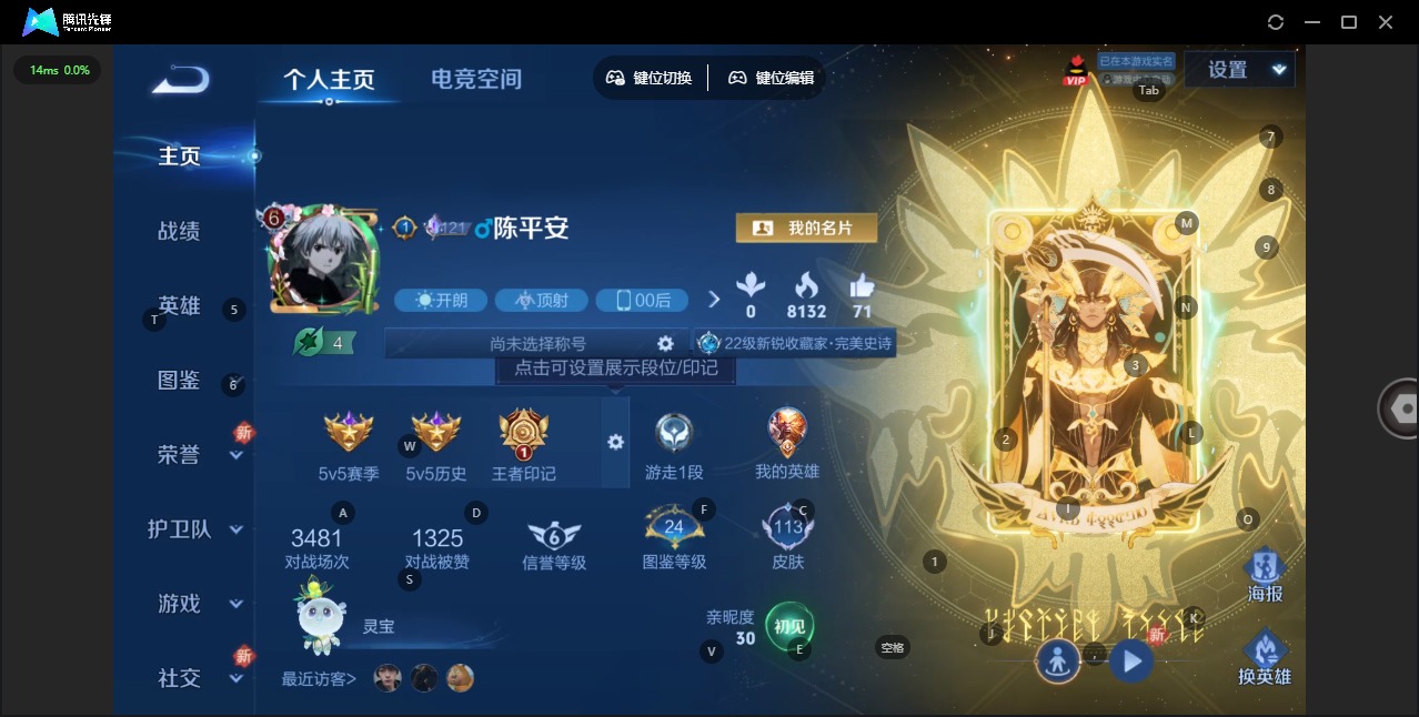 - PX_2072666-实名: 可修改 性别: 男号 贵族等级: V0 英雄数: 124 皮肤数: 273 荣耀水晶: 杀手不太冷 传说皮: 黄金狮子座,冠军飞将,浮生妄 限定皮: 冰锋战神,遇见飞天,李小龙,梁祝,御风骁将,天魔缭乱,青春决赛季,天狼绘梦者,白虎志,大圣娶亲,默契交锋-花木兰,高山流水,猪悟能,五谷丰年,怒海麟威,山海·玄木吟 亮点: 【店长推荐精品号】历史银标最高战力5271等多