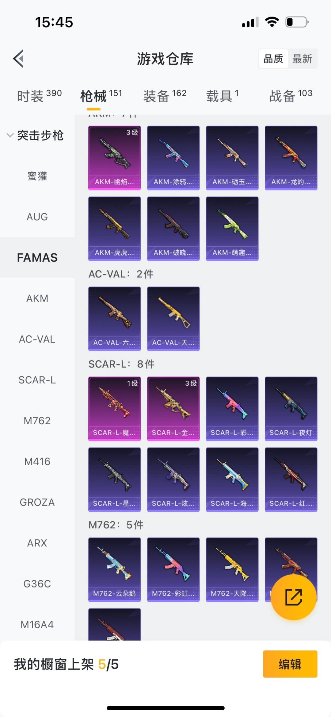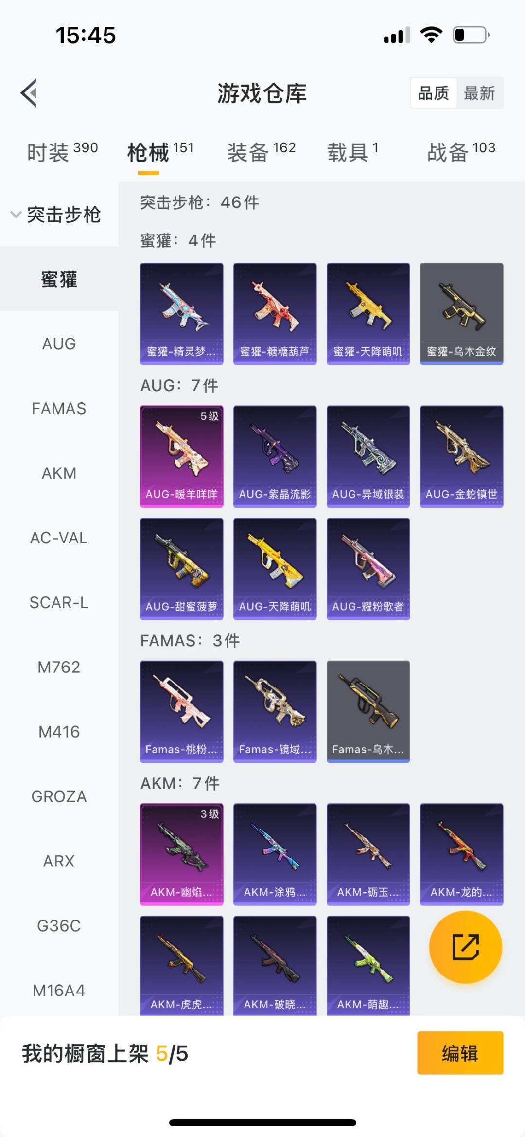 AUG-暖羊咩咩,AKM-幽焰骑士,SCAR-L-金蛇镇世,M416-女娲灵识,Kar98K-巳巳如意,SLR-暗夜玫瑰,MK12-雪月幻音