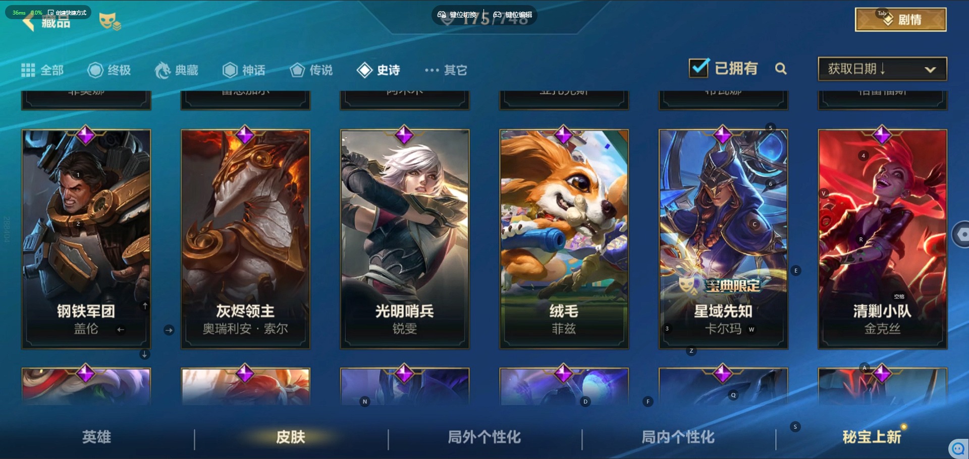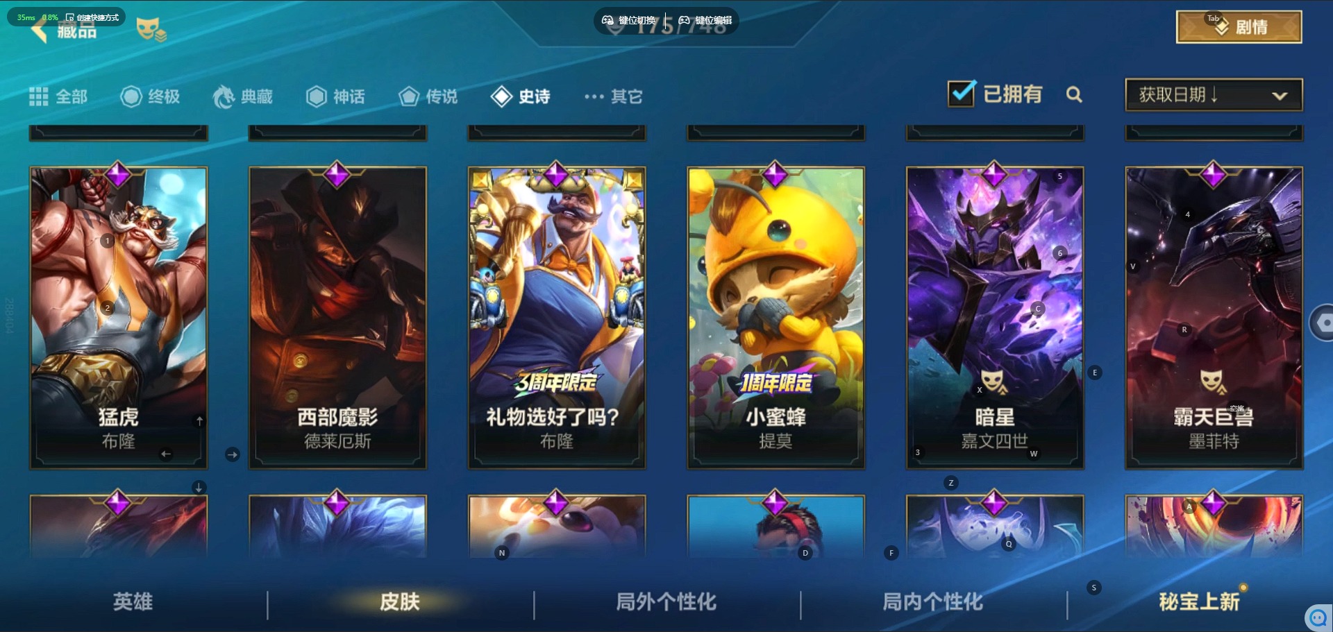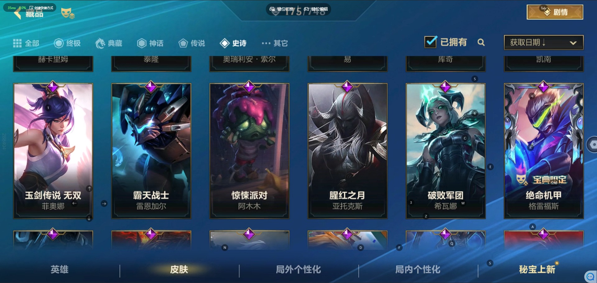 - [11287108]V8 1典藏 1珍品传说 15传说 124英雄 298皮肤 可修改实名 优质装备:鸣剑·曳影,器灵·落星盏,云鹰飞将(小将军),一念神魔,超时空战士-狄仁杰,山海·炽霜斩(李信年限),山海·琳琅生(小乔年限),山海·苍雷引(电光曜子) 珍宝阁皮:优雅恋人,蔷薇恋人,玩趣恶龙 限定皮:愿照·众生和(妲己年限),鸣野蒿,至尊宝,白虎志(电光耗子),傲雪梅枪,寅虎·展翼(孙膑年限),时雨天司(水龙头),神威(电光马子),山海·碧波行(瑶年限),无限倾心-项羽,高山流水,无限倾心-虞姬,五谷丰年,梁祝,御风骁将(吕布年限),李小龙,如梦令-后羿,默契交锋-花木兰,孙行者,猪悟能,大圣娶亲,冰霜恋舞曲,匿光追影者,寅虎·御盾(廉颇年限),寅虎·瑞焰(虎皮蛋子),寅虎·心曲(虎婆),寅虎·赤拳(老虎年限),百木心枪,山海·玄木吟(马可年限) 史诗皮:灵蛊蚀心,紫霞仙子,黄金分割率,特工魅影,千年之狐,江河有灵,高渐离燃音魔法,暗夜猫娘,无限星赏官,冰冠公主,青蛇,末日机甲-吕布,猫狗日记-孙策,猫狗日记-大乔,时之恋人-孙尚香,乱世虎臣,节奏热浪,女仆咖啡,摇滚巨星,水果甜心,绅士熊喵,天才门将,星夜王子,心灵骇客,功夫厨神,德古拉伯爵,暗隐猎兽者,幽灵船长,鬼剑武藏,心灵战警,舞动绿茵,地狱岩魂,纤云弄巧,繁星吟游(呼啦呼啦),拒霜思,缤纷独角兽,乘风破浪,逐浪之夏,水晶猎龙者,曙光守护者,箭羽风息,金属风暴,圣诞狂欢,圣诞恋歌,鹰眼统帅,暗夜贵公子,魅力维加斯,黎明之约,赏金猎手,天秀·音浪,寅虎·御盾,无心,未来纪元-赵云,玫瑰异探