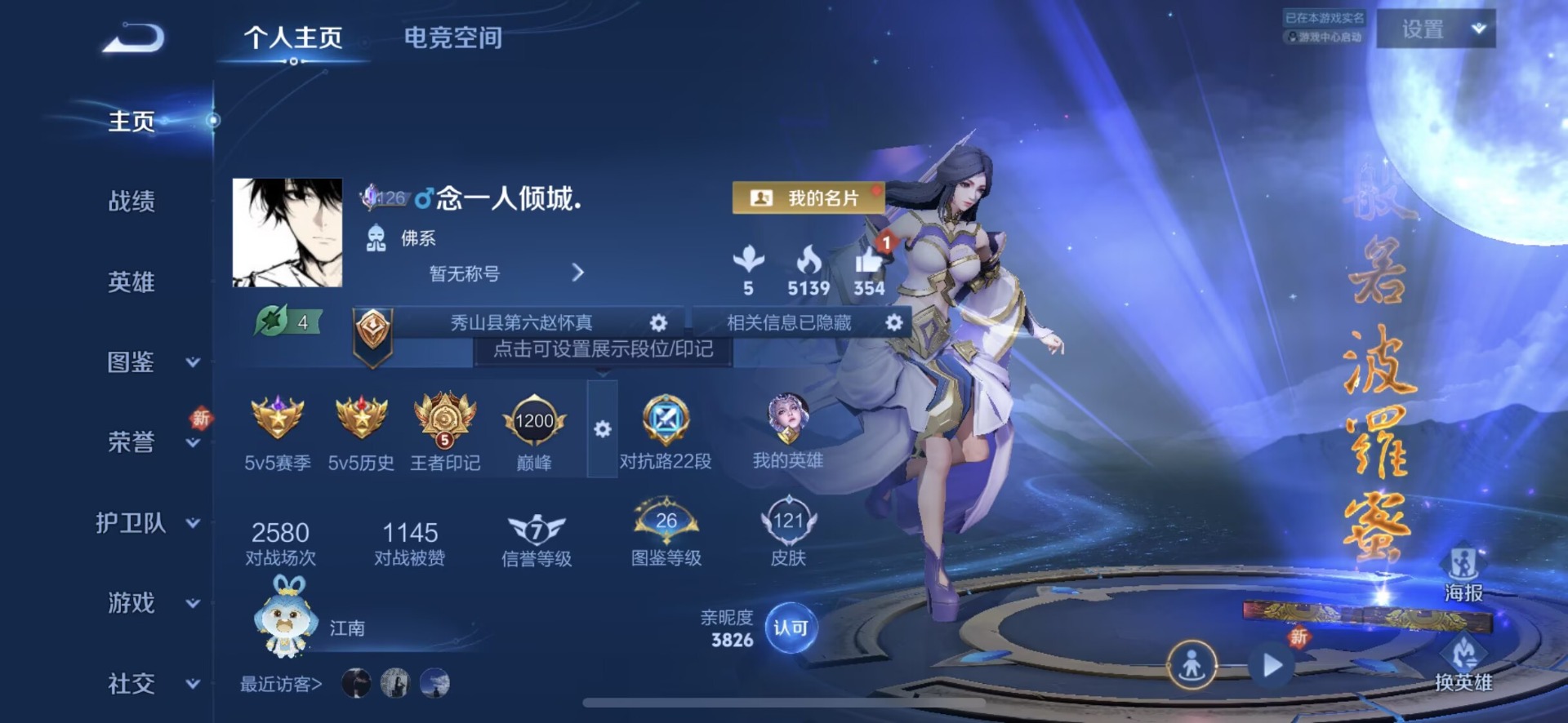 - [11606650]V8 1典藏 1珍品传说 6传说 124英雄 329皮肤 可修改实名 女号 安全保护中 优质装备:拾光映像(瑶典藏),大耳狗之梦,仲夏夜之梦(大飞蛾),零号·赤焰 传说皮:续相思 珍宝阁皮:蔷薇恋人,女武神,玩趣恶龙 限定皮:愿照·福禄聚(蔡文姬年限),逐霄战戟,鸣野蒿,傲雪梅枪,山海·碧波行(瑶年限),高山流水,五谷丰年,梁祝,御风骁将(吕布年限),李小龙,一生所爱,青春决赛季,冰霜恋舞曲,匿光追影者 史诗皮:赞萌露比,飞车小橘子,化蝶舞,灵蛊蚀心,星界战将,谪仙醉月,茶境仙,幻珠鲛人,破空之剑,涂山红红,琥珀纪元伽罗,蔬乡物语(鲁班七号),百相守梦-百里守约,百相守梦-黄忠,守夜人,遇见神鹿,紫霞仙子,苍穹之光,特工魅影,千年之狐,永昼,江河有灵,魅语,百解令(蒙犽),蒙恬荣光圣徽,无限星赏官,冰冠公主,青蛇,偶像歌手,晚萤,电玩·爆裂旋风,暗夜猫娘,末日机甲-吕布,猫狗日记-孙策,猫狗日记-大乔,时之恋人-孙尚香,乱世虎臣,修罗,女仆咖啡,摇滚巨星,水果甜心,绅士熊喵,天才门将,星夜王子,心灵骇客,时之奇旅-安琪拉,功夫厨神,暗隐猎兽者,幽灵船长,鬼剑武藏,心灵战警,天秀·启明,地狱岩魂,诗语江南,纤云弄巧,拒霜思,缤纷独角兽,乘风破浪,逐浪之夏,水晶猎龙者,曙光守护者,唤灵魅影,金属风暴,原初追逐者,圣诞狂欢,圣诞恋歌,鹰眼统帅,魅力维加斯,黎明之约,赏金猎手,滕王阁序,无心,未来纪元-赵云