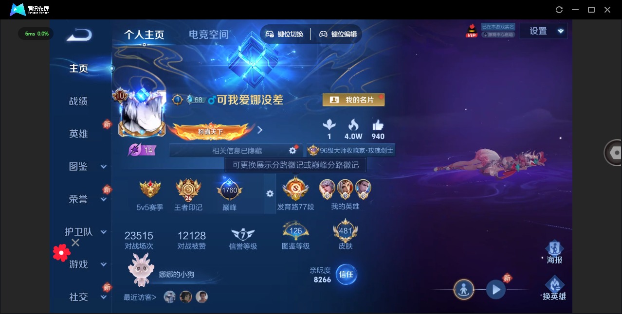 - [11228406]V8 1典藏 14传说 123英雄 309皮肤 可修改实名 荣耀水晶:赤影疾锋 传说皮:玄雷天君,李逍遥,黄金射手座,黄金白羊座,仲夏夜之梦(大飞蛾),久胜战神,炽阳神光,追逃游戏(安琪拉),灼幽烈阳,遇见神鼓 珍宝阁皮:优雅恋人,蔷薇恋人 限定皮:愿照·九州拓(澜年限),至尊宝,凤凰于飞,时雨天司(水龙头),瑞麟志(木兰年限),遇见飞天,高山流水,诗剑行,五谷丰年,游园惊梦,梁祝,天狼狩猎者,天狼溯光者,李小龙,朱雀志(守约年限),猪悟能,大圣娶亲,引擎之心 史诗皮:苍鳞隐世,化蝶舞,苍穹之光,电玩小子(小书包),白龙吟,黄金分割率,特工魅影,千年之狐,百解令(蒙犽),匿光破解者,冰冠公主,晚萤,无限星赏官,魅语,电玩·爆裂旋风,暗夜猫娘,猫狗日记-孙策,乱世虎臣,节奏热浪,修罗,女仆咖啡,摇滚巨星,水果甜心,天才门将,星夜王子,心灵骇客,功夫厨神,德古拉伯爵,暗隐猎兽者,幽灵船长,鬼剑武藏,心灵战警,舞动绿茵,地狱岩魂,纤云弄巧,繁星吟游(呼啦呼啦),拒霜思,缤纷独角兽,乘风破浪,逐浪之夏,水晶猎龙者,曙光守护者,箭羽风息,金属风暴,原初追逐者,圣诞狂欢,圣诞恋歌,鹰眼统帅,暗夜贵公子,魅力维加斯,黎明之约,赏金猎手,无心,未来纪元-赵云