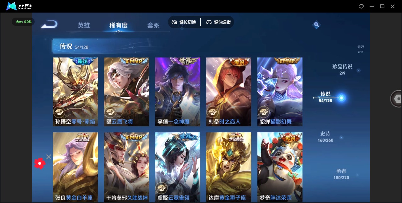 - [12105729]V7 12传说 124英雄 181皮肤 可修改实名 优质装备:猫影幻舞,久胜战神,云霓雀翎,末日机甲-孙尚香(绿蚂蚱),仲夏夜之梦(大飞蛾),地狱之眼 珍宝阁皮:蔷薇恋人 限定皮:愿照·九州拓(澜年限),愿照·岁时盈(虞姬年限),愿照·众生和(妲己年限),愿照·千秋盛(女娲年限),逐霄战戟,鸣野蒿,傲雪梅枪,齐天大圣,五谷丰年 史诗皮:绮世丹青,化蝶舞,龙之律动,雪豹·霜爪,茶境仙,撼地雄心,破空之剑,百相守梦-百里守约,星界特工,百相守梦-黄忠,紫霞仙子,特工魅影,千年之狐,江河有灵,真我赫兹(百里守约),青蛇,暗夜猫娘,末日机甲-吕布,猫狗日记-孙策,时之恋人-孙尚香,水果甜心,时之奇旅-安琪拉,功夫厨神,鬼剑武藏,暗渊魔法,心灵战警,水晶猎龙者,曙光守护者,唤灵魅影,圣诞恋歌,鹰眼统帅,魅力维加斯,未来纪元-赵云