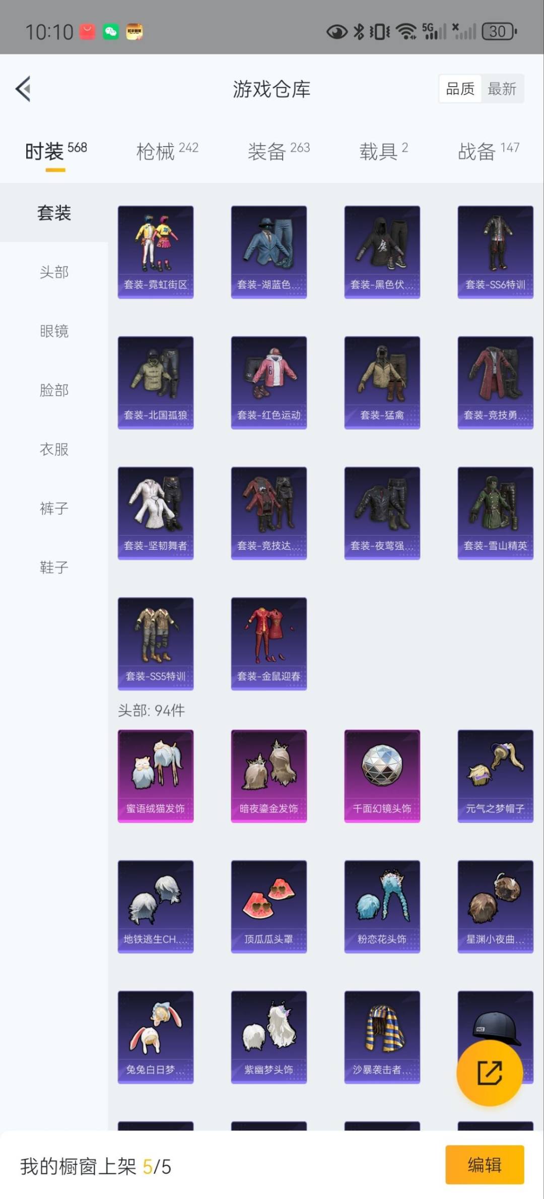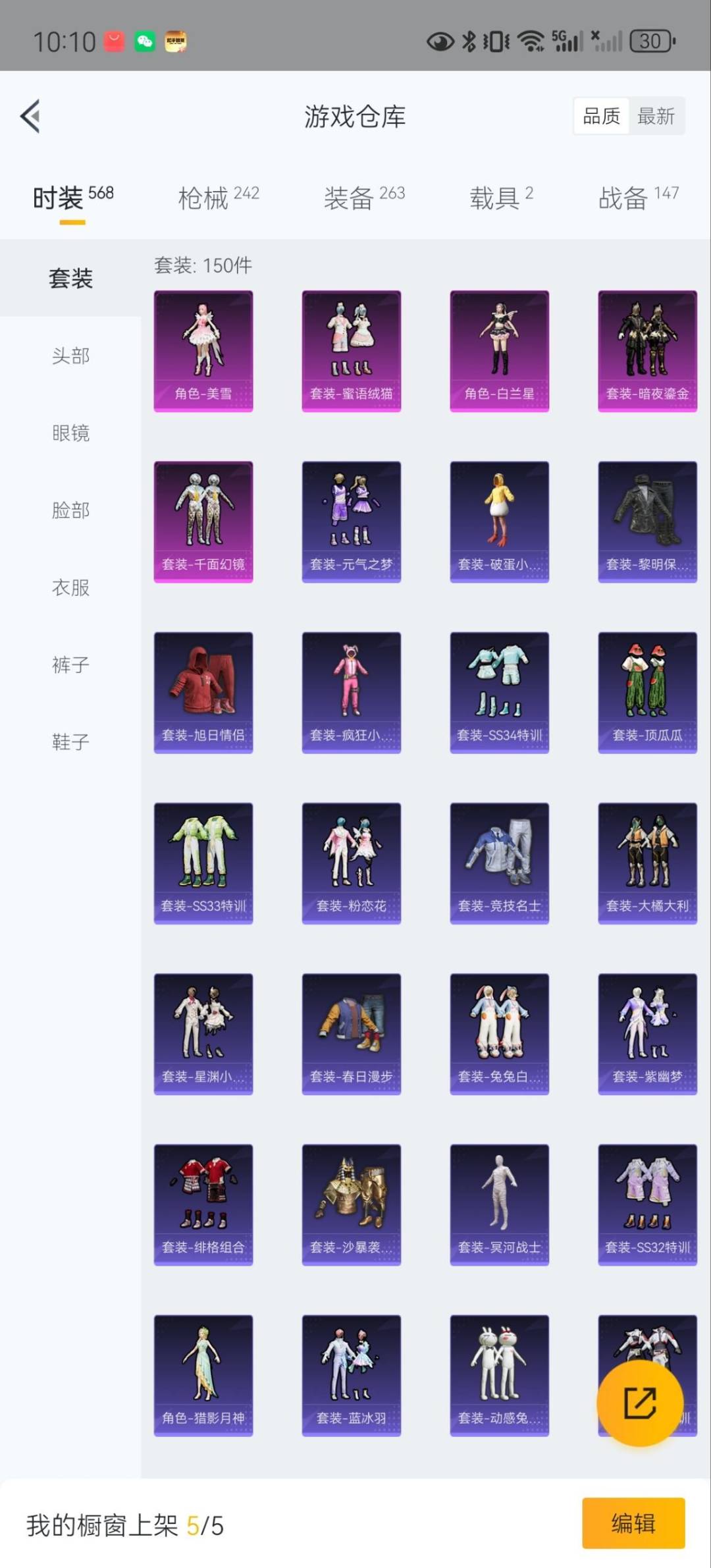 套装-鹰眼刺客,套装-迅捷狂鲨,套装-冥河战士,套装-千面幻镜,兔兔白日梦套装,套装-暗夜鎏金,角色-白兰星,套装-蜜语绒猫,角色-美雪