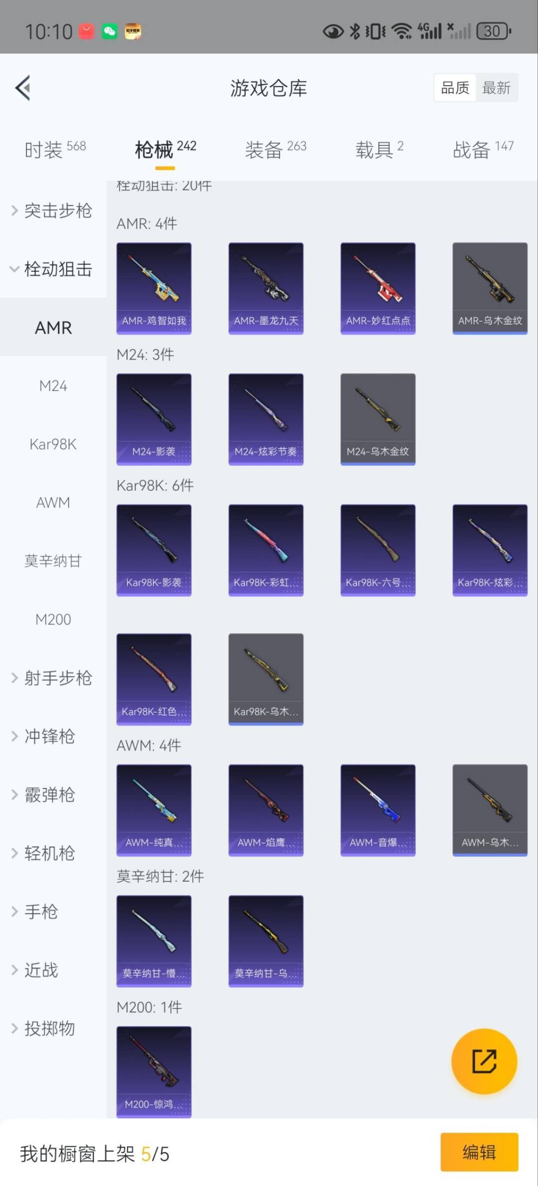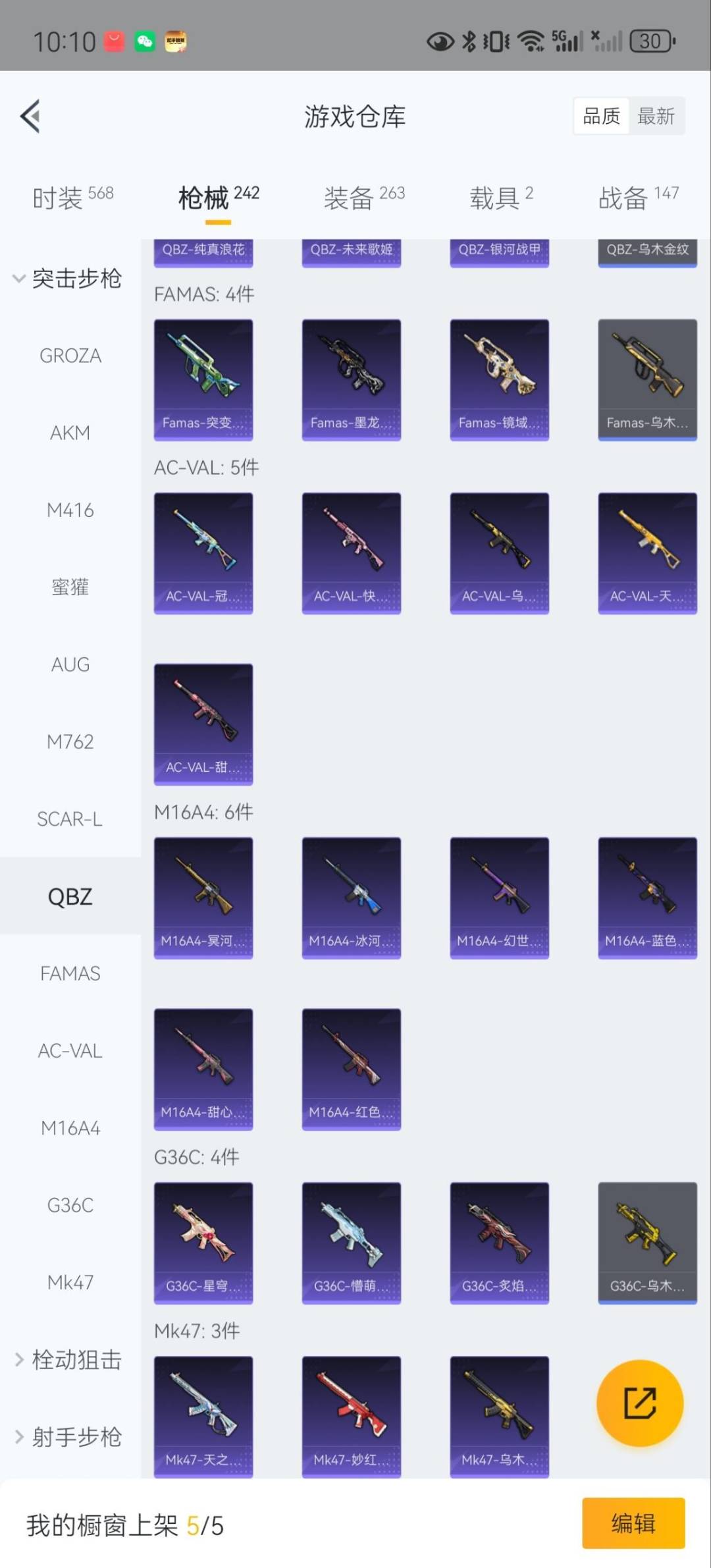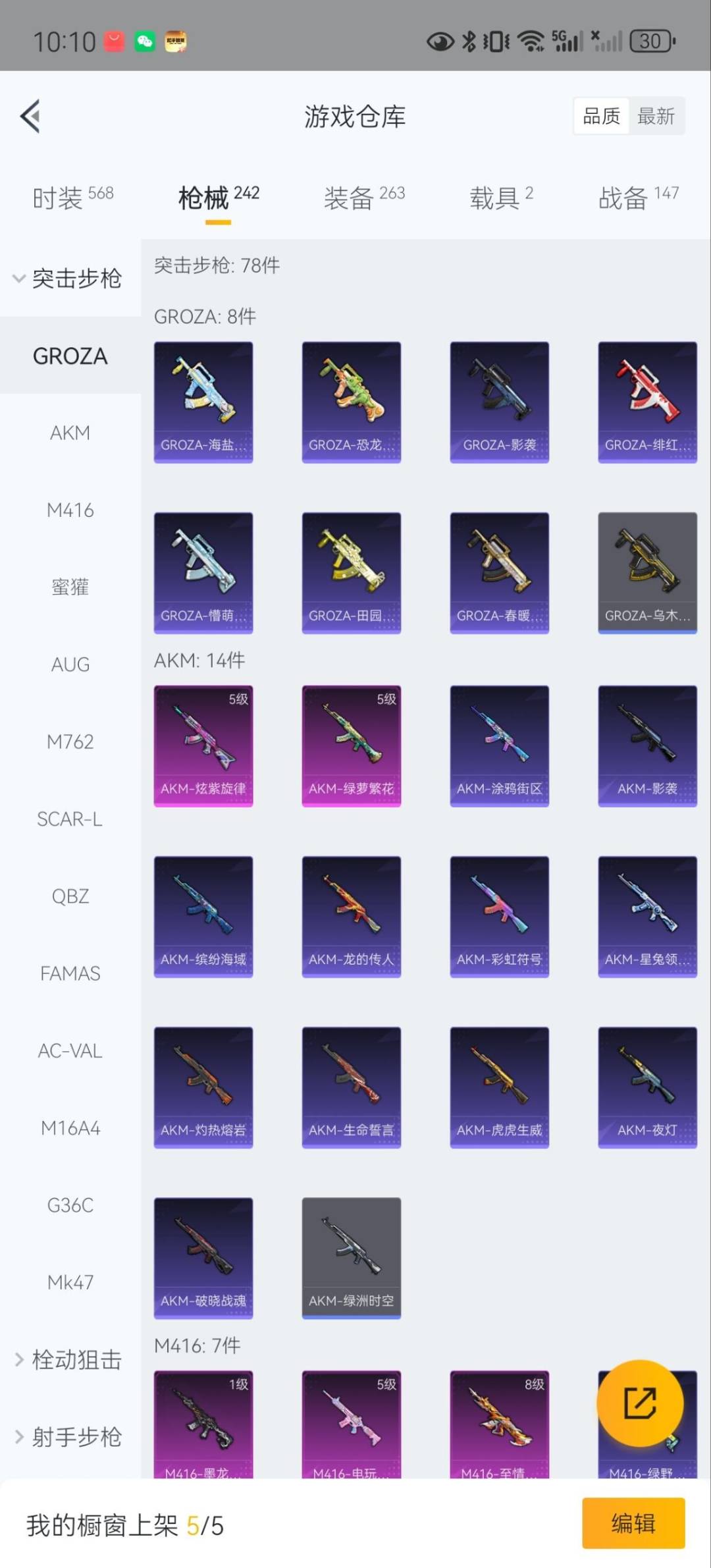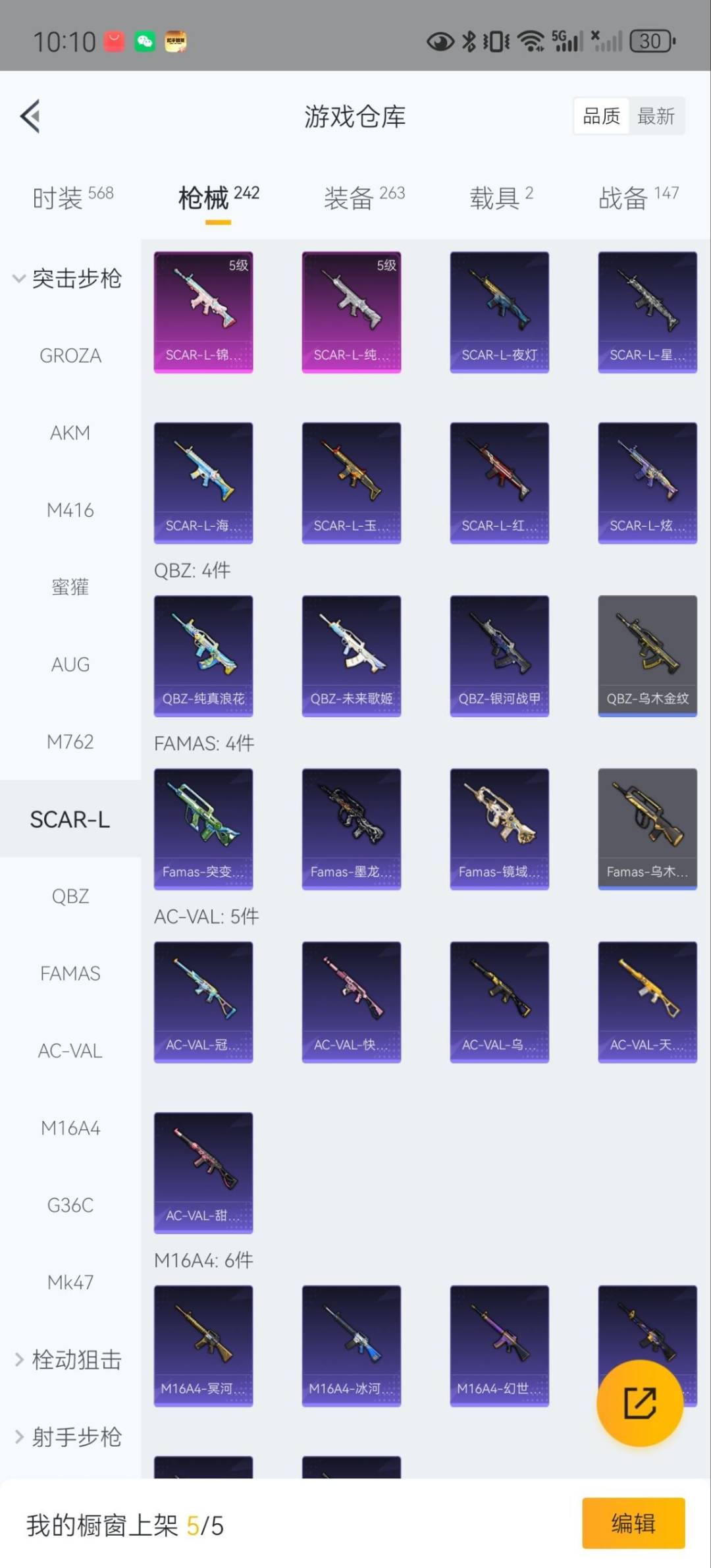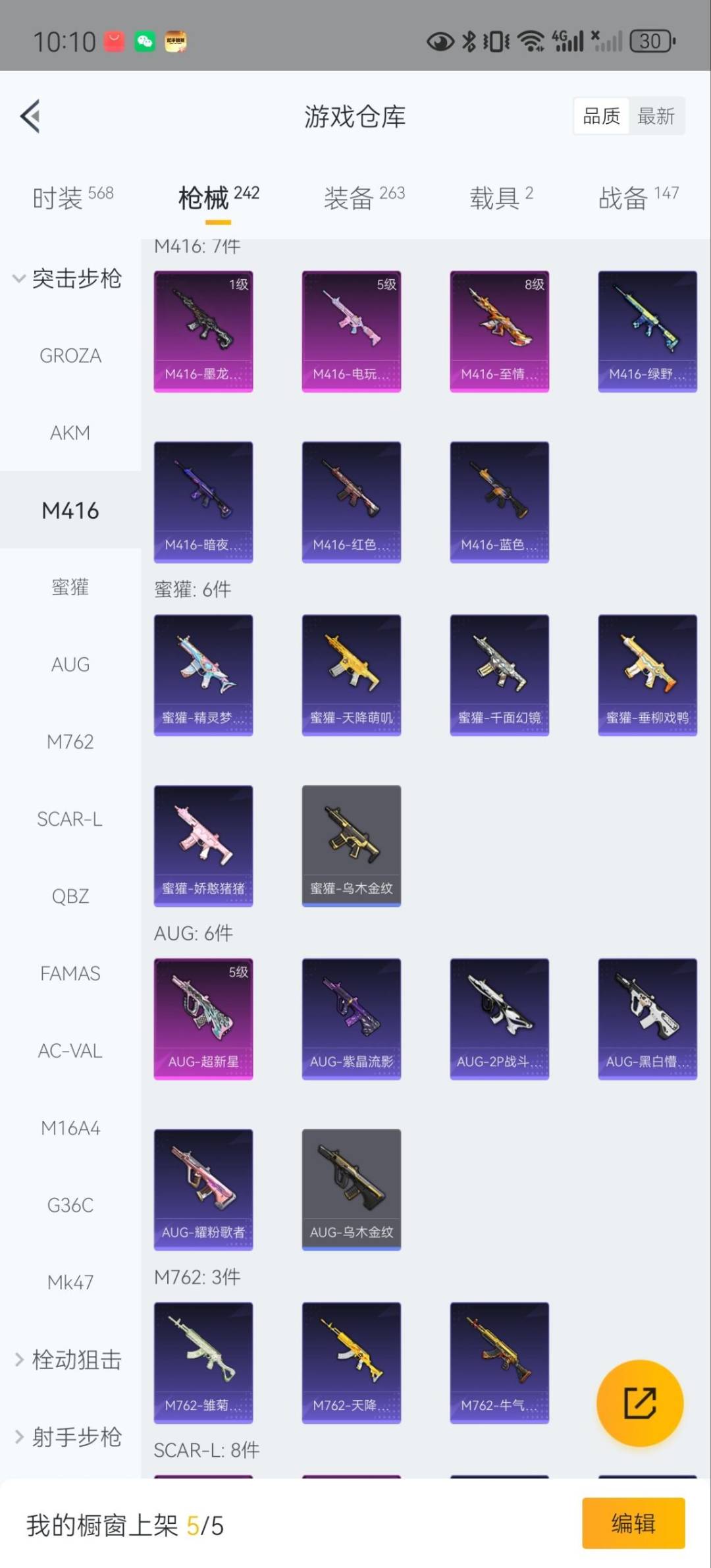 AKM-炫紫旋律,AKM-绿萝繁花,M416-墨龙九天,M416-至情至圣,M416-电玩时刻,AUG-超新星,SCAR-L-纯梦嫁纱,SCAR-L-锦绣绵绵,UMP45-量子极限