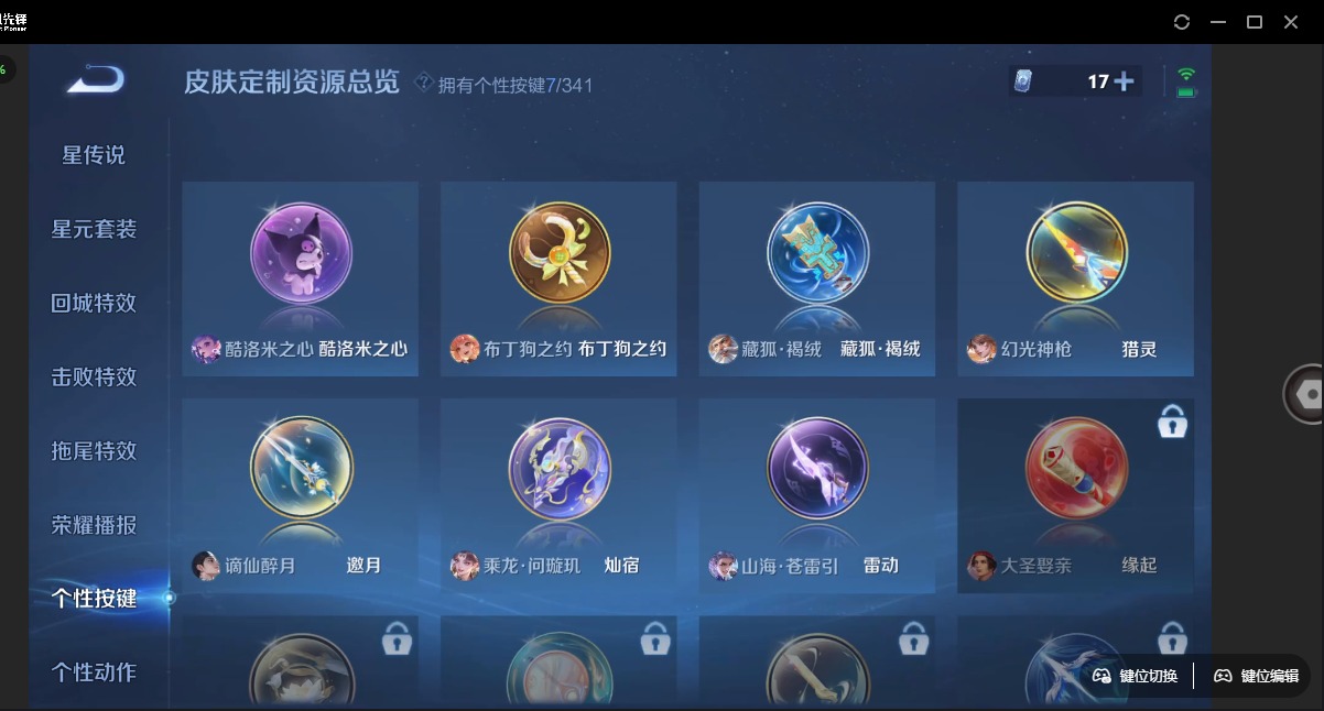 不知火舞绯月行,杨玉环寅虎·心曲,司空震愿照·山河定,貂蝉逐梦之音,艾琳陌上桑,桑启鸣野蒿,女娲愿照·千秋盛,孙悟空至尊宝,妲己愿照·众生和,蔡文姬愿照·福禄聚,澜愿照·九州拓,虞姬愿照·岁时盈,王昭君凤凰于飞,关羽冰锋战神