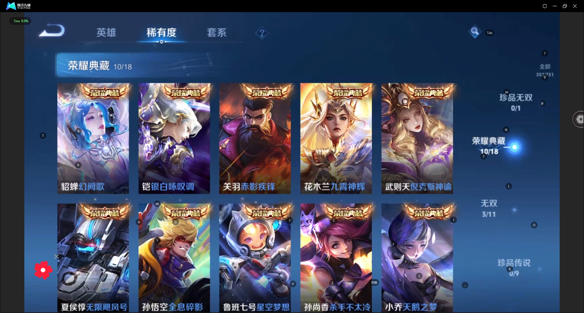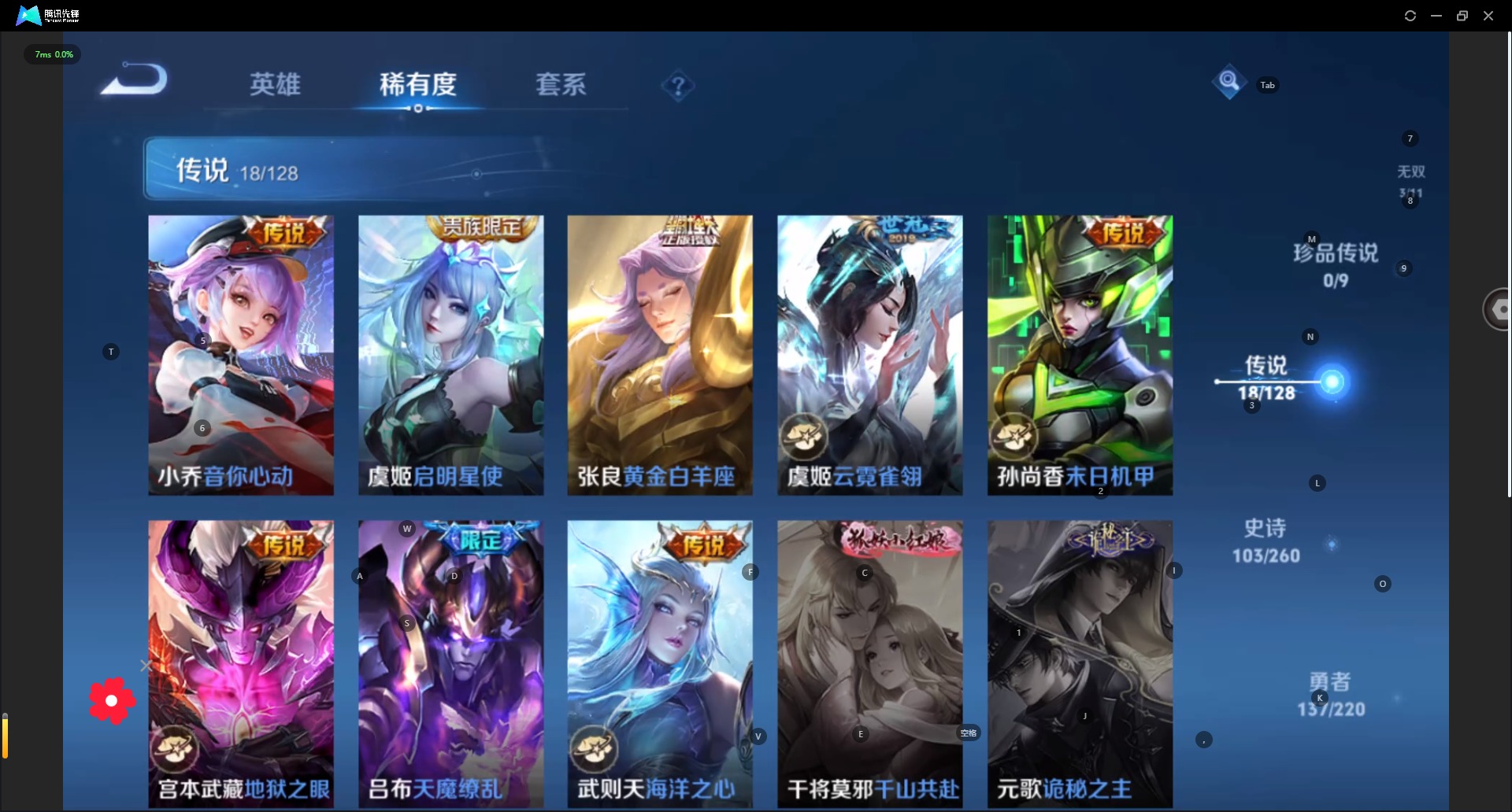 - [12089943]V7 1典藏 6传说 125英雄 245皮肤 可修改实名 优质装备:全息碎影(猴子典藏),黄金狮子座,猫影幻舞,久胜战神,一念神魔,地狱火 珍宝阁皮:女武神 限定皮:至尊宝,神威(电光马子),飞衡(韩信年限),齐天大圣,五谷丰年,冰锋战神,游园惊梦,李小龙,朱雀志(守约年限),大圣娶亲 史诗皮:灵蛊蚀心,星界战将,百相守梦-黄忠,紫霞仙子,黄金分割率,千年之狐,魅语,蒙恬荣光圣徽,无限星赏官,冰冠公主,偶像歌手,末日机甲-吕布,猫狗日记-孙策,猫狗日记-大乔,乱世虎臣,节奏热浪,修罗,女仆咖啡,摇滚巨星,水果甜心,天才门将,星夜王子,功夫厨神,德古拉伯爵,暗隐猎兽者,幽灵船长,鬼剑武藏,地狱岩魂,纤云弄巧,缤纷独角兽,乘风破浪,逐浪之夏,水晶猎龙者,金属风暴,原初追逐者,圣诞狂欢,圣诞恋歌,鹰眼统帅,暗夜贵公子,魅力维加斯,黎明之约,未来纪元-赵云