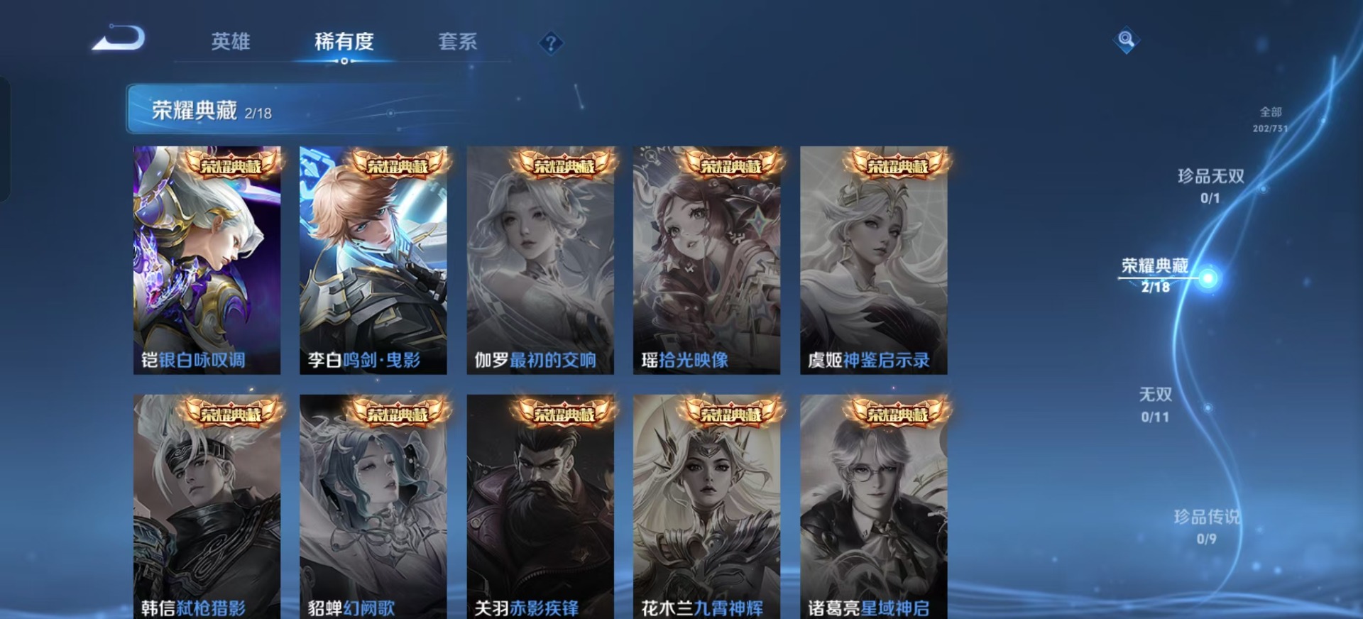 - PX_2097203-实名: 可修改 性别: 男号 贵族等级: V10 英雄数: 121 皮肤数: 235 荣耀水晶: 武则天,天鹅之梦,星空梦想,倪克斯神谕,无限飓风号,活力突击,杀手不太冷,鸣剑·曳影,全息碎影,银白咏叹调 星传说: 幽冥之眼,金色仲夏夜 传说皮: 黄金射手座,一念神魔,云霓雀翎,仲夏夜之梦,海洋之心,地狱之眼,飞鸢探春,胖达荣荣,游龙清影,淬星耀世,超时空战士-狄仁杰,山海·