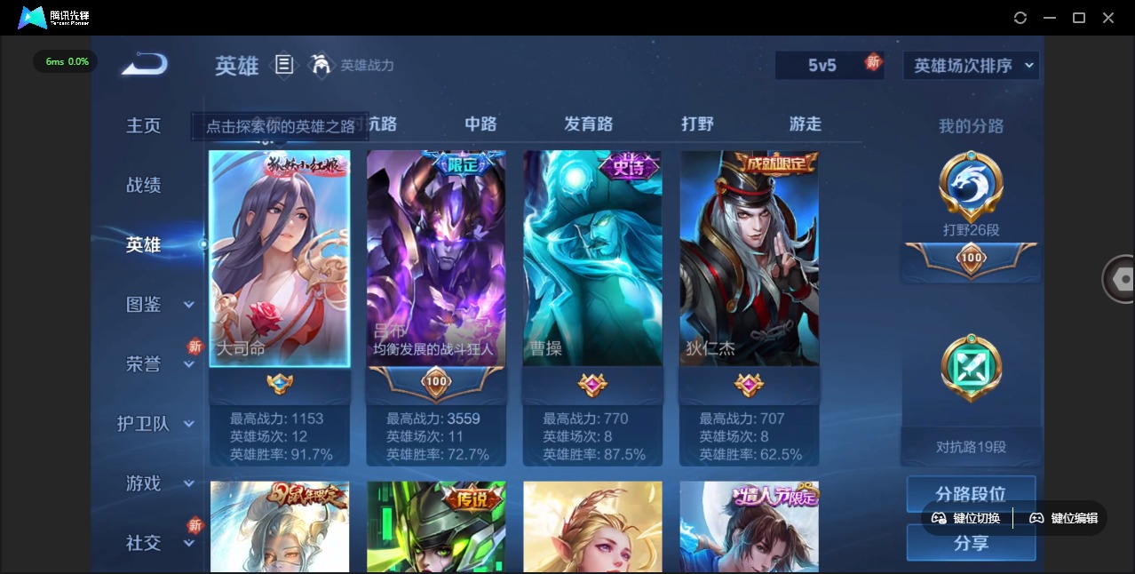 - [11874900]V6 124英雄 165皮肤 可修改实名 珍宝阁皮:蔷薇恋人 限定皮:至尊宝,梁祝,天狼狩猎者,龙胆,天狼征服者,天狼绘梦者,李小龙,朱雀志(守约年限),如梦令-后羿,一生所爱,大圣娶亲,冰霜恋舞曲 史诗皮:黄金分割率,末日机甲-吕布,节奏热浪,水果甜心,星夜王子,舞动绿茵,纤云弄巧,繁星吟游(呼啦呼啦),水晶猎龙者,曙光守护者,鹰眼统帅,魅力维加斯,未来纪元-赵云