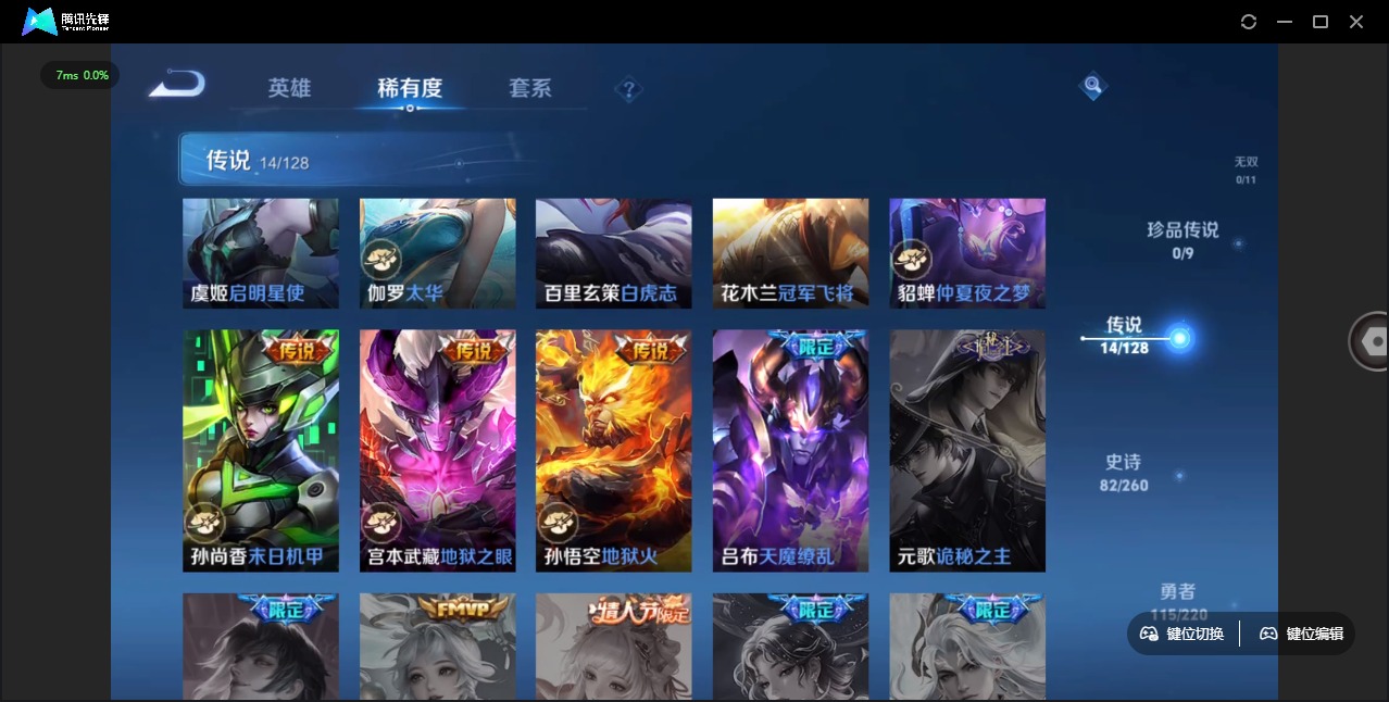 - [11989189]V7 5传说 123英雄 147皮肤 可修改实名 优质装备:云鹰飞将(小将军),猫影幻舞,末日机甲-孙尚香(绿蚂蚱),地狱火,超时空战士-狄仁杰,涂山容容 限定皮:至尊宝,天狼运算者,天狼征服者,天狼绘梦者,李小龙,大圣娶亲 史诗皮:龙之律动,石田雨龙,百相守梦-周瑜,紫霞仙子,特工魅影,千年之狐,无限星赏官,时之恋人-孙尚香,乱世虎臣,节奏热浪,水果甜心,德古拉伯爵,鬼剑武藏,地狱岩魂,纤云弄巧,繁星吟游(呼啦呼啦),缤纷独角兽,逐浪之夏,曙光守护者,箭羽风息,金属风暴,圣诞恋歌,鹰眼统帅,未来纪元-赵云