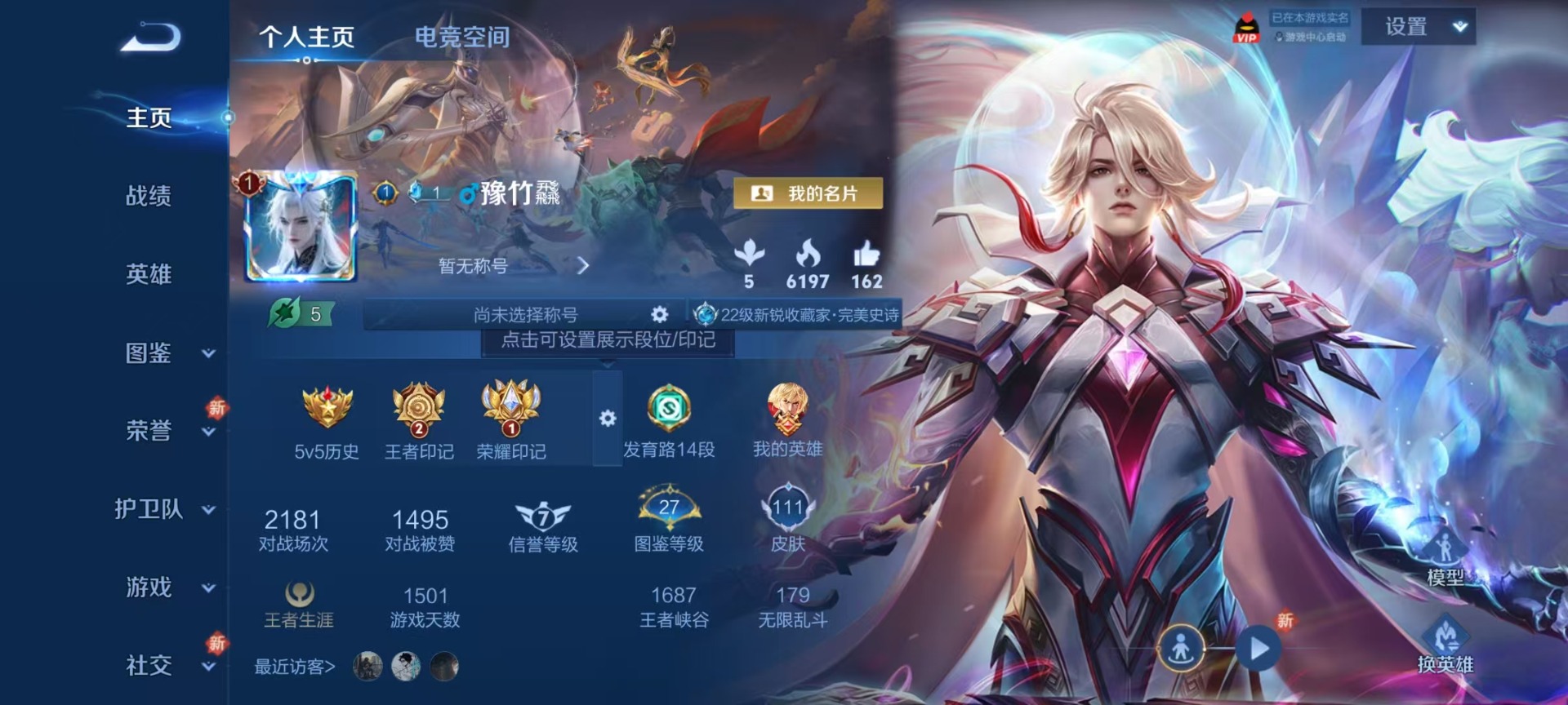 [11971480]V5 2传说 122英雄 111皮肤 可修改实名 优质装备:山海·炽霜斩(李信年限) 珍宝阁皮:蔷薇恋人 限定皮:鸣野蒿,五谷丰年,梁祝,山海·玄木吟(马可年限) 史诗皮:紫霞仙子,特工魅影,江河有灵,电玩·爆裂旋风,龙骑士(小龙虾),节奏热浪,女仆咖啡,水果甜心,暗隐猎兽者,幽灵船长,鬼剑武藏,心灵战警,舞动绿茵,地狱岩魂,缤纷独角兽,乘风破浪,逐浪之夏,水晶猎龙者,曙光守护者,唤灵魅影,金属风暴,鹰眼统帅,魅力维加斯,无心,未来纪元-赵云