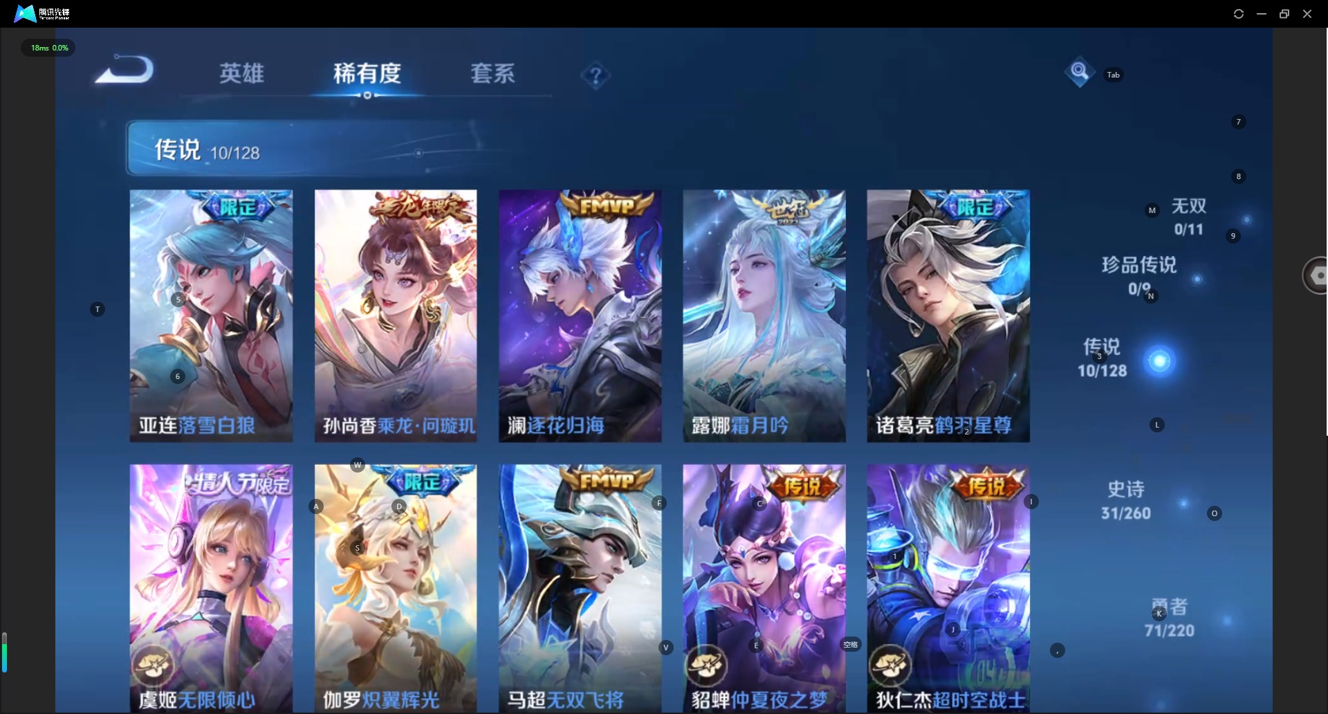 - [12163540]V7 1典藏 1珍品传说 7传说 124英雄 195皮肤 可修改实名 优质装备:银白咏叹调(倪克斯侍卫),黄金白羊座,一念神魔,无双飞将 珍品传说:时之奇旅-孙策 传说皮:乘龙·铭钟鼎(赵云年限),死亡执政官 珍宝阁皮:妄想食味 限定皮:愿照·岁时盈(虞姬年限),逐霄战戟,鸣野蒿,遇见飞天,辉光之辰 史诗皮:鸭鸭历险记-刘禅,器灵·浮梦炉,化蝶舞,星界战将,龙之律动,百相守梦-周瑜,茶境仙,破空之剑,百相守梦-百里守约,百相守梦-黄忠,苍穹之光,特工魅影,千年之狐,江河有灵,百解令(蒙犽),高渐离燃音魔法,蒙恬荣光圣徽,冰冠公主,偶像歌手,白蛇,猫狗日记-大乔,时之恋人-孙尚香,节奏热浪,女仆咖啡,水果甜心,绅士熊喵,天才门将,星夜王子,功夫厨神,德古拉伯爵,幽灵船长,鬼剑武藏,舞动绿茵,地狱岩魂,乘风破浪,月团寄思,水晶猎龙者,曙光守护者,箭羽风息,金属风暴,圣诞狂欢,圣诞恋歌,鹰眼统帅,魅力维加斯