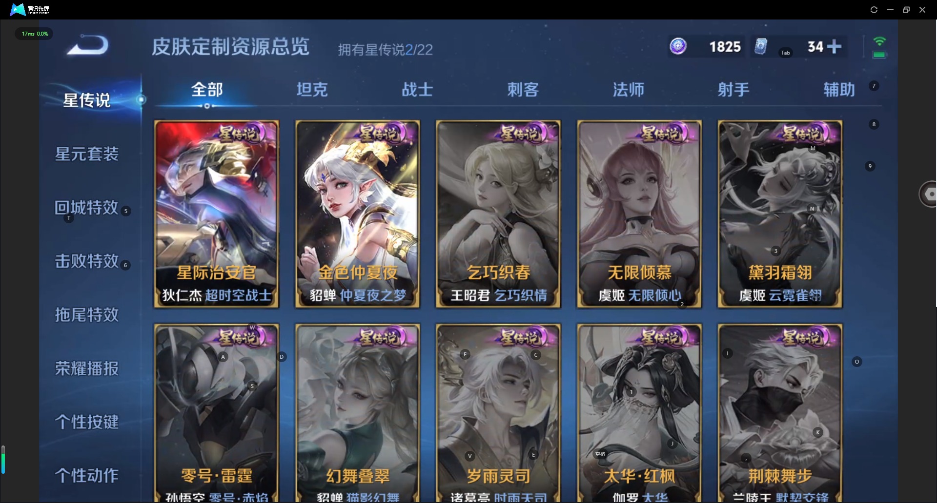 阿轲节奏热浪,鲁班七号电玩小子,刘禅电玩·爆裂旋风,刘禅天才门将,宫本武藏鬼剑武藏,兰陵王暗隐猎兽者,花木兰水晶猎龙者,亚瑟心灵战警,程咬金功夫厨神,弈星滕王阁序,王昭君偶像歌手,橘右京修罗
