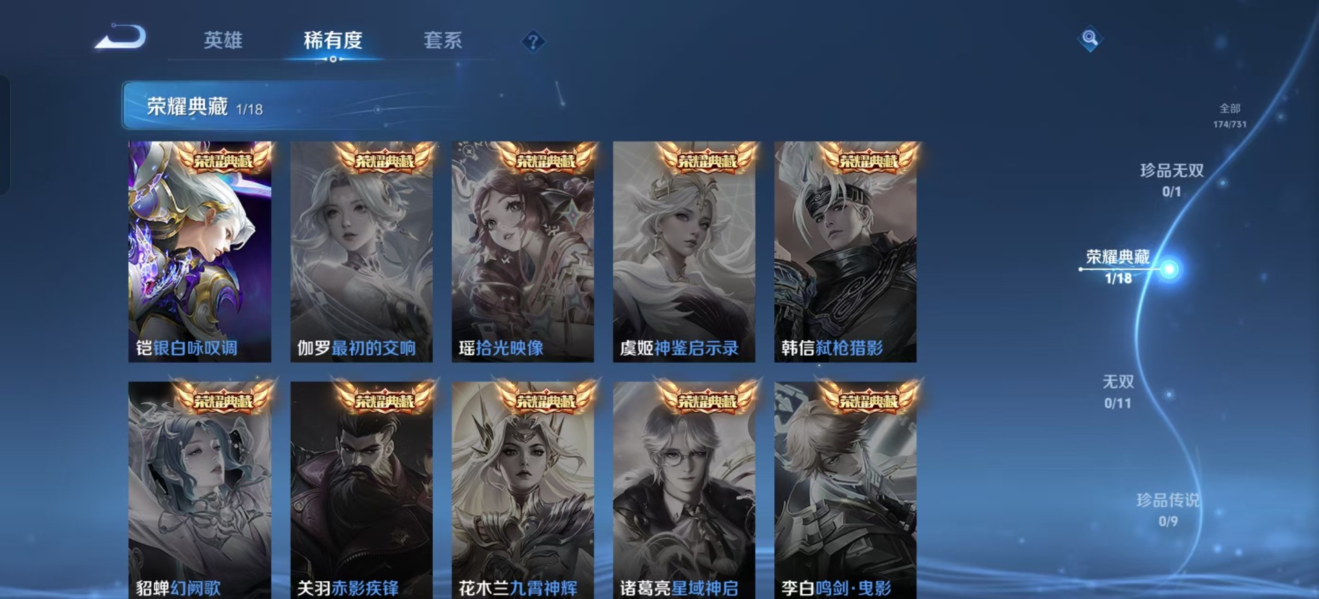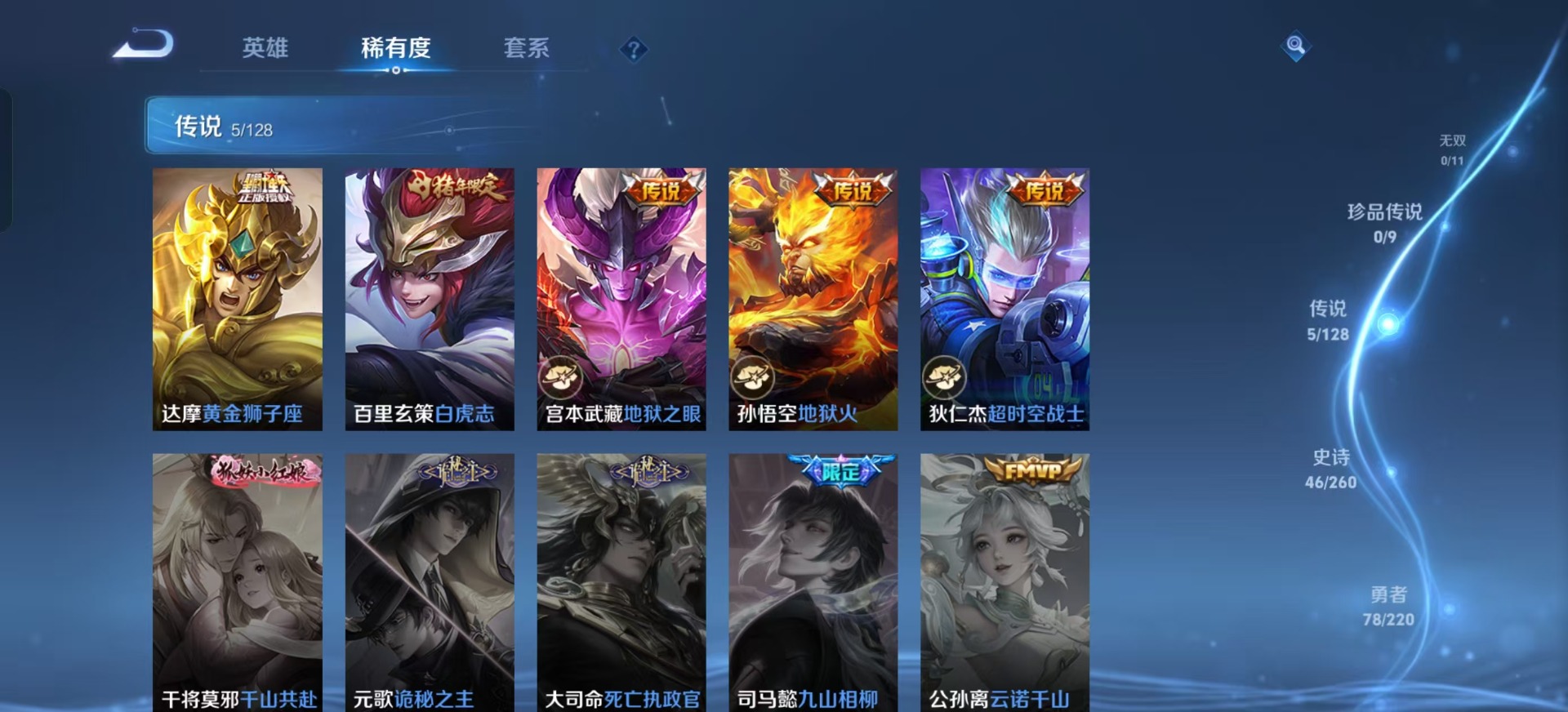 铠青龙志,苏烈玄武志,张飞虎魄,赵云龙胆,裴擒虎李小龙,裴擒虎天狼狩猎者,上官婉儿梁祝,花木兰瑞麟志,孙悟空大圣娶亲,孙悟空至尊宝,孙悟空美猴王,百里玄策白虎志,韩信飞衡,韩信逐梦之影,关羽冰锋战神