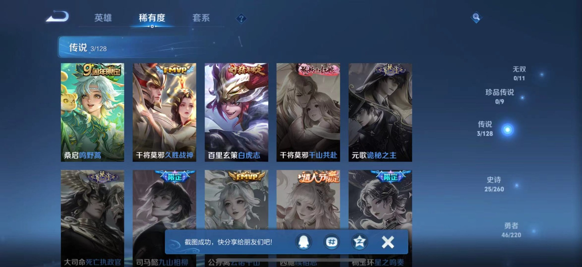 - [11985111]【商品标题】:安卓Q-V5-至尊星耀III段位-123英雄-189皮肤-0典藏-0珍品无双-0无双-0珍品传说-2传说-42史诗 【内测皮肤】:孙尚香蔷薇恋人,高渐离玩趣恶龙,狂铁特工战影 【传说皮肤】:孙尚香末日机甲,桑启鸣野蒿 【限定皮肤】:蔡文姬夏日便利店,虞姬夏日便利店,姜子牙天穹之誓,狄仁杰阴阳师,赵云皇家上将,赵云引擎之心,孙尚香蔷薇恋人,高渐离玩趣恶龙,钟无艳超时空战士,夏侯惇朔风刀,甄姬游园惊梦,甄姬落雪兰心,狄仁杰魔术师,狄仁杰万华元夜,达摩星际陆战队,达摩沙漠行僧,项羽海滩派对,老夫子醍醐杖,关羽冰锋战神,程咬金演武夺筹,兰陵王金庭之子,牛魔御旌,李元芳云中旅人,钟馗驱傩正仪,雅典娜单词大作战,鬼谷子原初探秘者,鬼谷子五谷丰年,苏烈千军破阵,弈星混沌棋,沈梦溪大漠名商,明世隐疑决卦,裴擒虎李小龙,裴擒虎擒涛扼浪,米莱狄御霄,米莱狄胡桃异想国,盾山御銮,猪八戒西部大镖客,上官婉儿梁祝,嫦娥拒霜思,蒙犽狂想玩偶喵,桑启海盐诗旅,阿古朵江河有灵,张良古海寻踪,鬼谷子天穹祈灯,刘邦剑破天穹,周瑜熔金海岸 【赛季限定】:夏侯惇朔风刀,狄仁杰万华元夜,达摩沙漠行僧,老夫子醍醐杖,程咬金演武夺筹,兰陵王金庭之子,张良古海寻踪,牛魔御旌,李元芳云中旅人,钟馗驱傩正仪,鬼谷子原初探秘者,苏烈千军破阵,弈星混沌棋,沈梦溪大漠名商,明世隐疑决卦,裴擒虎擒涛扼浪,米莱狄御霄,盾山御銮,桑启海盐诗旅,鬼谷子天穹祈灯,刘邦剑破天穹,姜子牙天穹之誓 【战令限定】:蔡文姬夏日便利店,虞姬夏日便利店,钟无艳超时空战士,甄姬落雪兰心,达摩星际陆战队,雅典娜单词大作战,米莱狄胡桃异想国,猪八戒西部大镖客,蒙犽狂想玩偶喵 【史诗皮肤】:露娜紫霞仙子,赵云皇家上将,赵云未来纪元,貂蝉圣诞恋歌,甄姬冰雪圆舞曲,王昭君偶像歌手,狄仁杰魔术师,孙尚香蔷薇恋人,孙尚香水果甜心,嬴政摇滚巨星,妲己女仆咖啡,墨子龙骑士,墨子金属风暴,吕布圣诞狂欢,张飞乱世虎臣,韩信白龙吟,关羽冰锋战神,赵云引擎之心,刘邦德古拉伯爵,夏侯惇乘风破浪,兰陵王暗隐猎兽者,甄姬游园惊梦,亚瑟心灵战警,雅典娜冰冠公主,百里守约特工魅影,李元芳逐浪之夏,程咬金功夫厨神,阿轲节奏热浪,孙策猫狗日记,狄仁杰鹰眼统帅,上官婉儿梁祝,大乔白蛇,不知火舞魅语,蒙犽狂想玩偶喵,裴擒虎李小龙,米莱狄胡桃异想国,嫦娥拒霜思,钟无艳超时空战士