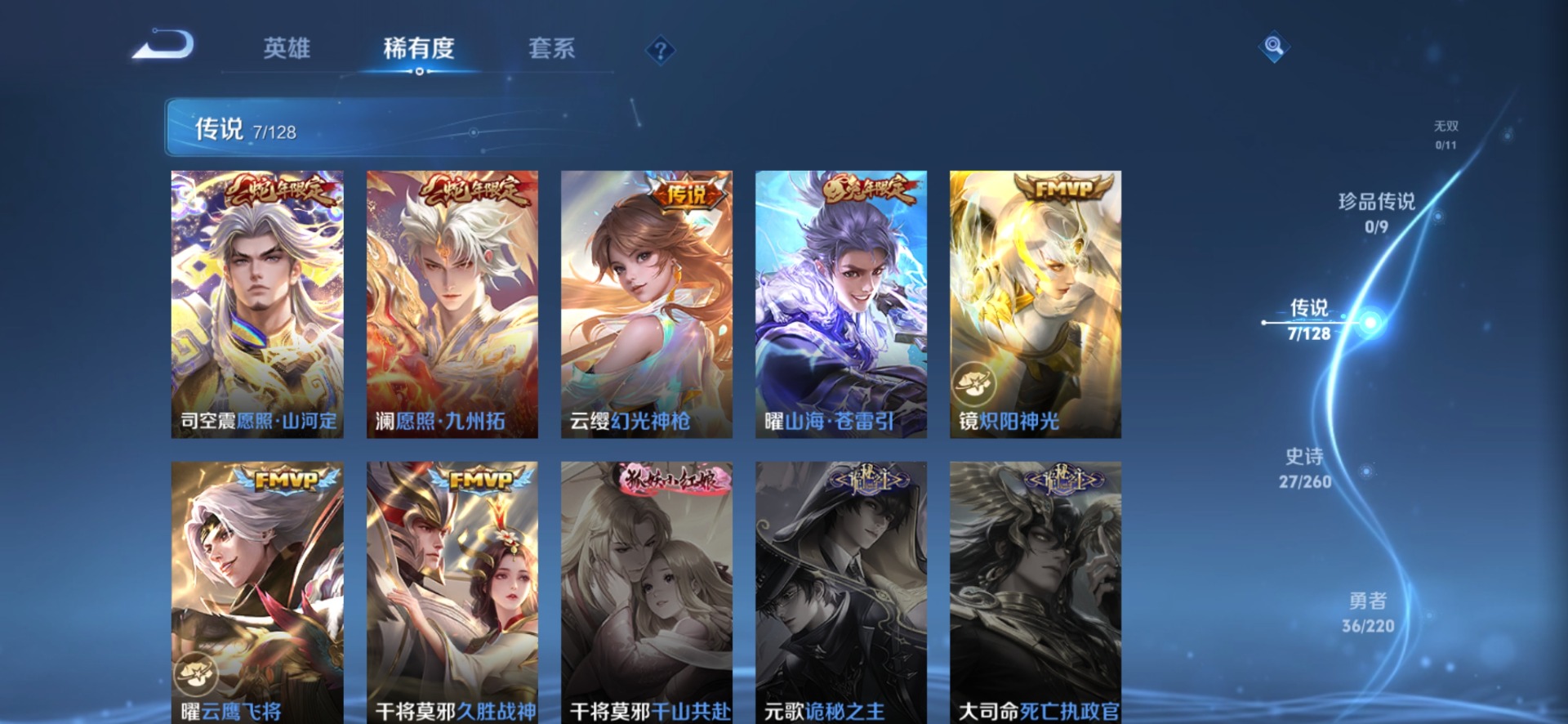 - [12263429]天鹅之梦,杀手不太冷,武则天,赛季限定狮心王,小将军,紫霞,至尊宝,-可二次-125英雄-338皮肤-2典藏-16传说-100史诗 淬星耀世-赵云 寅虎·赤拳-裴擒虎 凤求凰-李白 时雨天司-诸葛亮 岱宗-典韦 冰锋战神-关羽 冰冠公主-雅典娜 神威-马超 至尊宝-孙悟空 街头霸王-韩信
