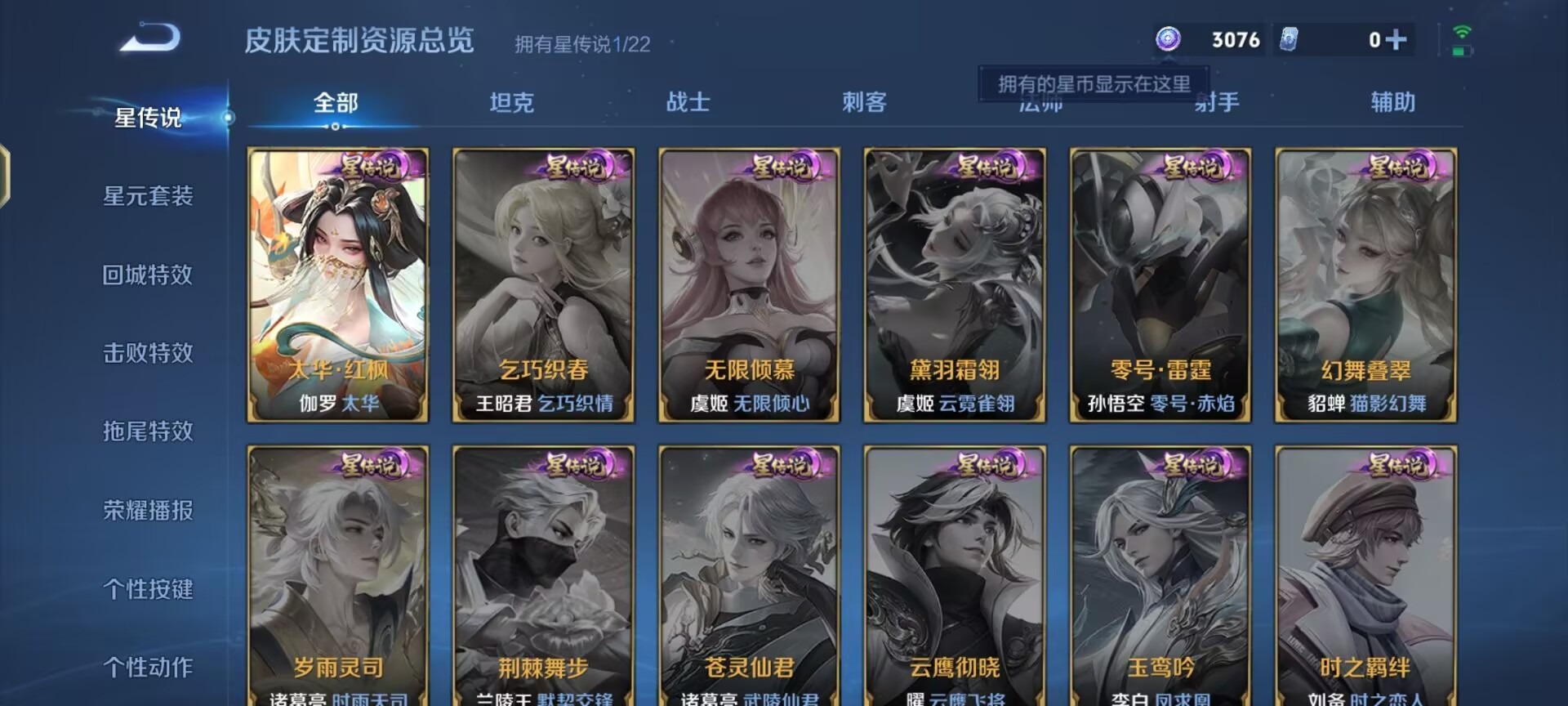 - [12174040]久胜,紫霞,马可年限,-可二次-124英雄-198皮肤-6传说-48史诗 齐天大圣-孙悟空 山海·玄木吟-马可波罗 街头霸王-韩信