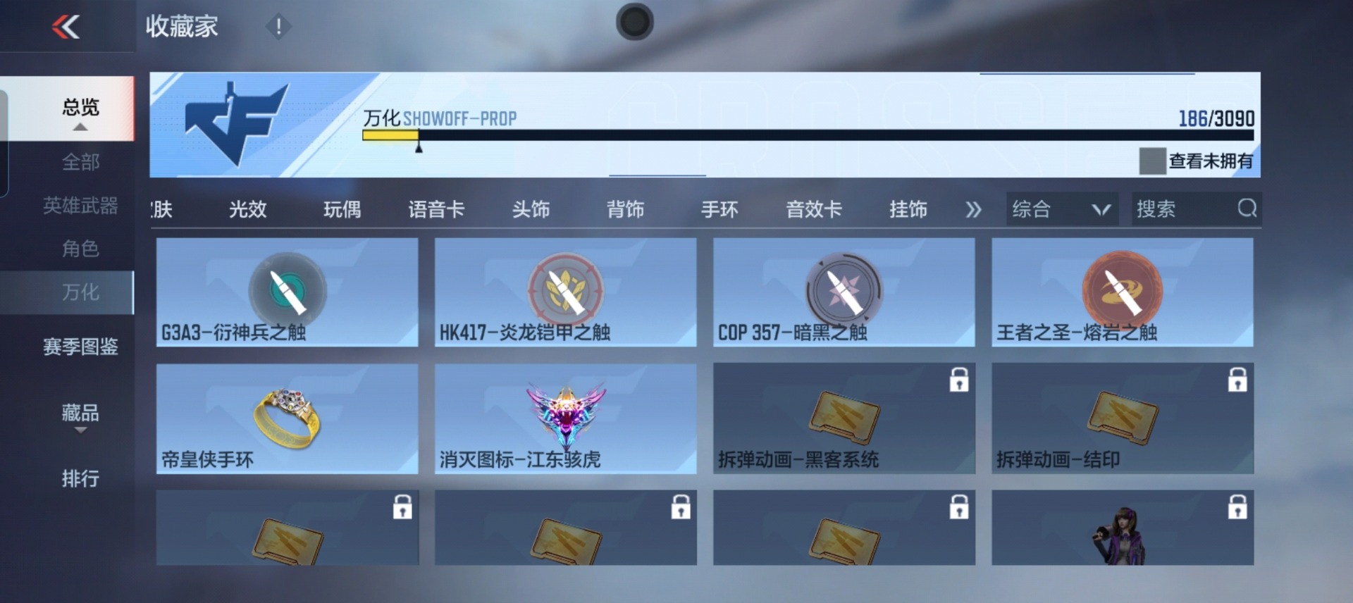 - [12025697]总资产:133.2M 3干员外观 1近战传说 11传说枪械 哈夫币:12.528K 可二次 可修改实名 优质装备:近战-黑海 烽火地带段位:无段位 全面战场段位:无段位 传说武器皮肤:SCAR-H战斗步枪-水墨云图,SR-25射手步枪-水墨云图,SCAR-H战斗步枪-铁艺苍穹,G18-飞虎,725双管霰弹枪-送葬人-无题密令,M7战斗步枪-维京,M4A1突击步枪-蚀金玫瑰,AK-12突击步枪-夜鹰,MP5冲锋枪-黑海,QJB201轻机枪-黑海 干员外观:威龙-飞虎,红狼-蚀金玫瑰,骇爪-水墨云图
