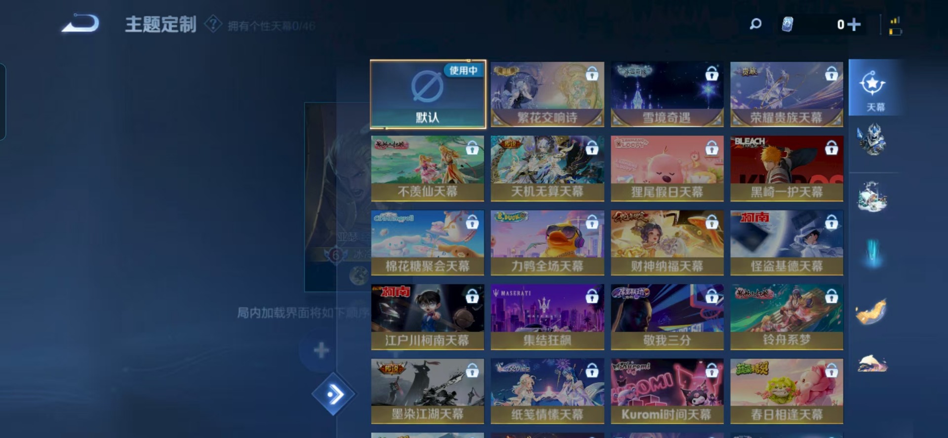 刘邦德古拉伯爵,夏侯惇乘风破浪,铠曙光守护者,曹操幽灵船长,伽罗箭羽风息,孙尚香时之恋人,孙策猫狗日记,露娜紫霞仙子,诸葛亮黄金分割率,刘禅绅士熊喵,宫本武藏鬼剑武藏,兰陵王暗隐猎兽者,貂蝉唤灵魅影,花木兰水晶猎龙者,李白千年之狐,安琪拉心灵骇客,杨戬天秀·启明,白起星夜王子,亚瑟心灵战警,百里玄策热力回旋,百里玄策原初追逐者,雅典娜冰冠公主,李元芳逐浪之夏,墨子金属风暴,瑶遇见神鹿,澜赏金猎手,娜可露露晚萤,王昭君偶像歌手,橘右京修罗