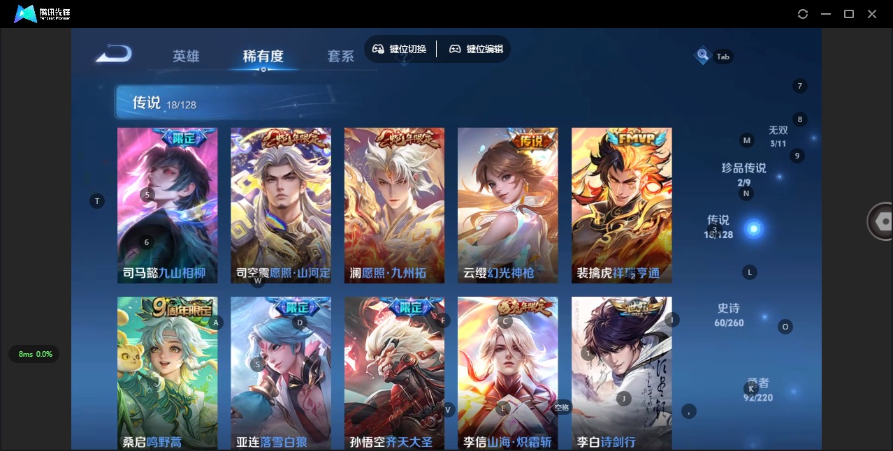 - [11227702]V7 6传说 122英雄 263皮肤 可修改实名 传说皮:幻光神枪,地狱之眼,一念神魔,炽阳神光 珍宝阁皮:妄想食味,蔷薇恋人,玩趣恶龙 限定皮:愿照·九州拓(澜年限),鸣野蒿,傲雪梅枪,神威(电光马子),遇见飞天,高山流水,五谷丰年,梁祝,李小龙,朱雀志(守约年限),山海·玄木吟(马可年限) 史诗皮:星界战将,器灵·浮梦炉,百相守梦-百里守约,战舞者,炽弈燎原,破空之剑,紫霞仙子,苍穹之光,特工魅影,千年之狐,永昼,江河有灵,高渐离燃音魔法,蒙恬荣光圣徽,电玩·爆裂旋风,百相守梦(关羽),猫狗日记-孙策,乱世虎臣,节奏热浪,修罗,女仆咖啡,摇滚巨星,水果甜心,绅士熊喵,天才门将,星夜王子,心灵骇客,功夫厨神,德古拉伯爵,暗隐猎兽者,幽灵船长,鬼剑武藏,心灵战警,纤云弄巧,拒霜思,缤纷独角兽,乘风破浪,逐浪之夏,月团寄思,水晶猎龙者,曙光守护者,箭羽风息,金属风暴,原初追逐者,圣诞狂欢,圣诞恋歌,鹰眼统帅,暗夜贵公子,魅力维加斯,黎明之约,赏金猎手,无心,未来纪元-赵云,玫瑰异探