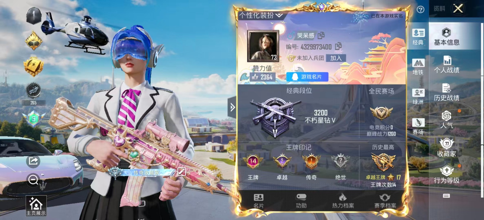 - [11467766]3粉装 1特效枪 11印记 可二次 可修改实名 安全保护中 优质装备:星穹咏叹调,幻彩电音 热门装扮:紫电风暴,迅捷狂鲨 稀有枪皮:DP-28-豹影疾电 五级特效枪:五级DP-28-豹影疾电 紫色装扮:SS22特训,SS23特训,SS21特训,军械专家,极速光影,云朵鹅,彩虹兔,雪绒豹,SS33特训套装,顶瓜瓜,SS20特训,SS15特训,SS16特训,萌趣颜团子,特种颜团子,飞驰魅影,音速流光,SS19特训,豚鼠丹丹,雪兔飞飞,SS17特训,SS18特训,长空猛禽,雨林探路者,缤纷果语,虎虎生威吉莉,鹤鸣,麻辣教官,龟仙人,柠萌假日,滨海假日,夏日音浪,幻世战舞者,探宝勇士,滨海厨神,绮丽涂鸦,甜蜜告白,福星高照,空岛之星,空投萌叽,甜蜜熊情侣,牛气冲天,灰色格斗者,炫蓝之夏,牛气满满,特殊使命,特训学院,玉兔迎春,竞技名士,果汁能量,SS24特训(SS24特训套装),SS25特训,粉红小猪,菲菲,SS27特训,星河浪客,大橘大利,星影赞美诗,SS32特训服(SS32特训套装),白糯汤圆 优质战备:恐龙拽拽降落伞,第五大道降落伞