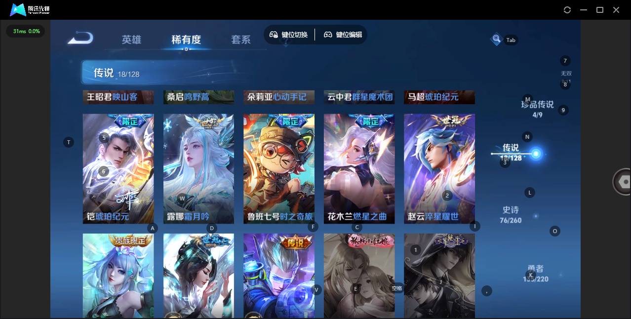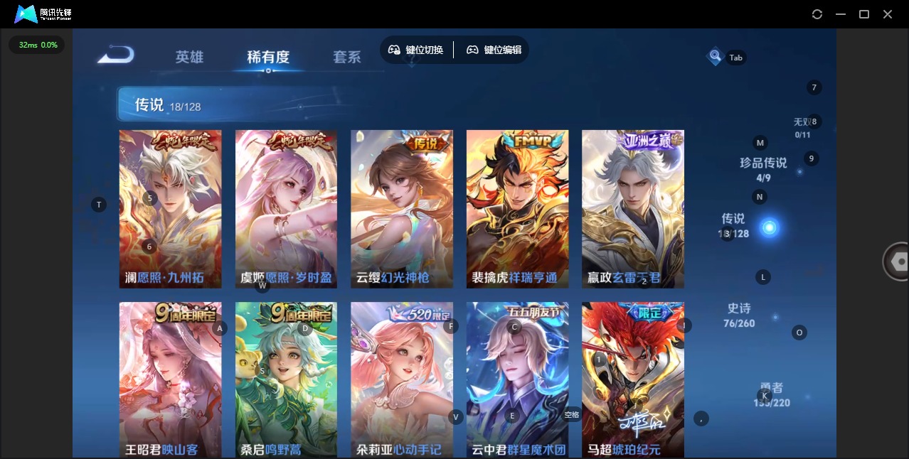 - [11688533]V7 2典藏 13传说 125英雄 199皮肤 可修改实名 优质装备:鸣剑·曳影,弑枪猎影(韩信典藏),冠军飞将,云鹰飞将(小将军),炽阳神光,一念神魔,地狱之眼,无双飞将,电玩·雷克斯,澜逐花归海 珍宝阁皮:蔷薇恋人 限定皮:愿照·九州拓(澜年限),愿照·山河定(司空震年限),陌上桑,鸣野蒿,夏侯惇霜北刀,傲雪梅枪,诗剑行,五谷丰年,百木心枪,山海·玄木吟(马可年限) 史诗皮:器灵·浮梦炉,化蝶舞,谪仙醉月,龙之律动,百相守梦-周瑜,茶境仙,撼地雄心,破空之剑,蒙犽顽岩魄,埋骨钱,琥珀纪元伽罗,蔬乡物语(鲁班七号),曹操夜都魔契,百相守梦-黄忠,织梦人,紫霞仙子,苍穹之光,黄金分割率,特工魅影,千年之狐,江河有灵,百解令(蒙犽),高渐离燃音魔法,青蛇,偶像歌手,电玩·爆裂旋风,百相守梦(刘备),暗夜猫娘,末日机甲-吕布,猫狗日记-孙策,猫狗日记-大乔,乱世虎臣,节奏热浪,修罗,女仆咖啡,水果甜心,天才门将,星夜王子,功夫厨神,暗隐猎兽者,幽灵船长,鬼剑武藏,暗渊魔法,地狱岩魂,纤云弄巧,拒霜思,乘风破浪,逐浪之夏,水晶猎龙者,曙光守护者,箭羽风息,金属风暴,圣诞恋歌,鹰眼统帅,魅力维加斯,赏金猎手,未来纪元-赵云
