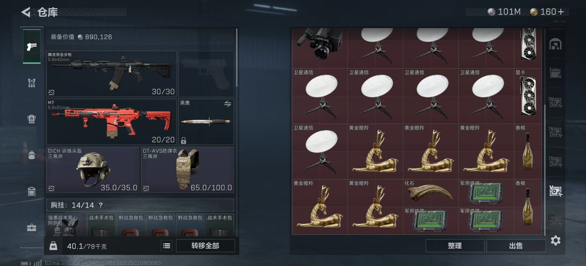 - [11608332]总资产:3.9M 1近战传说 4传说枪械 哈夫币:474.146K 可二次 可修改实名 优质装备:近战-北极星 烽火地带段位:青铜 全面战场段位:无段位 传说武器皮肤:勇士冲锋枪-能天使-午夜邮差,K437突击步枪-北极星,QCQ171冲锋枪-北极星 史诗武器皮肤:AWM狙击步枪-私人定制(典藏)