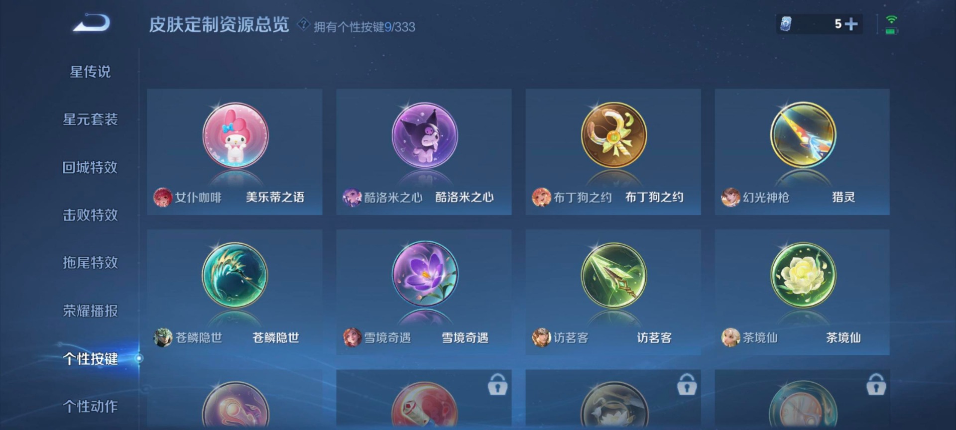 - PX_2099382-贵族等级: V6 英雄数: 123 皮肤数: 147 荣耀水晶: 最初的交响 珍品传说: 怪盗基德,器灵·落星盏 传说皮: 山海·炽霜斩,幻光神枪 限定皮: 李小龙,五谷丰年,鸣野蒿,逐霄战戟,愿照·千秋盛