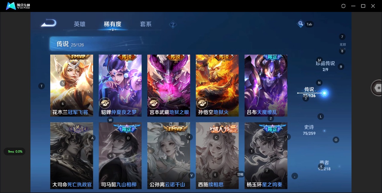 - [12002863]V6 4传说 123英雄 216皮肤 可修改实名 优质装备:地狱火,地狱之眼 传说皮:幻光神枪 珍宝阁皮:妄想食味,蔷薇恋人 限定皮:愿照·岁时盈(虞姬年限),遇见飞天,高山流水,五谷丰年,梁祝,逐梦之星,李小龙,猪悟能 史诗皮:苍鳞隐世,器灵·浮梦炉,化蝶舞,星界战将,石田雨龙,茶境仙,紫霞仙子,特工魅影,末日机甲-吕布,猫狗日记-孙策,猫狗日记-大乔,水果甜心,天才门将,德古拉伯爵,幽灵船长,鬼剑武藏,缤纷独角兽,乘风破浪,水晶猎龙者,金属风暴,原初追逐者,圣诞狂欢,鹰眼统帅,魅力维加斯,赏金猎手,未来纪元-赵云