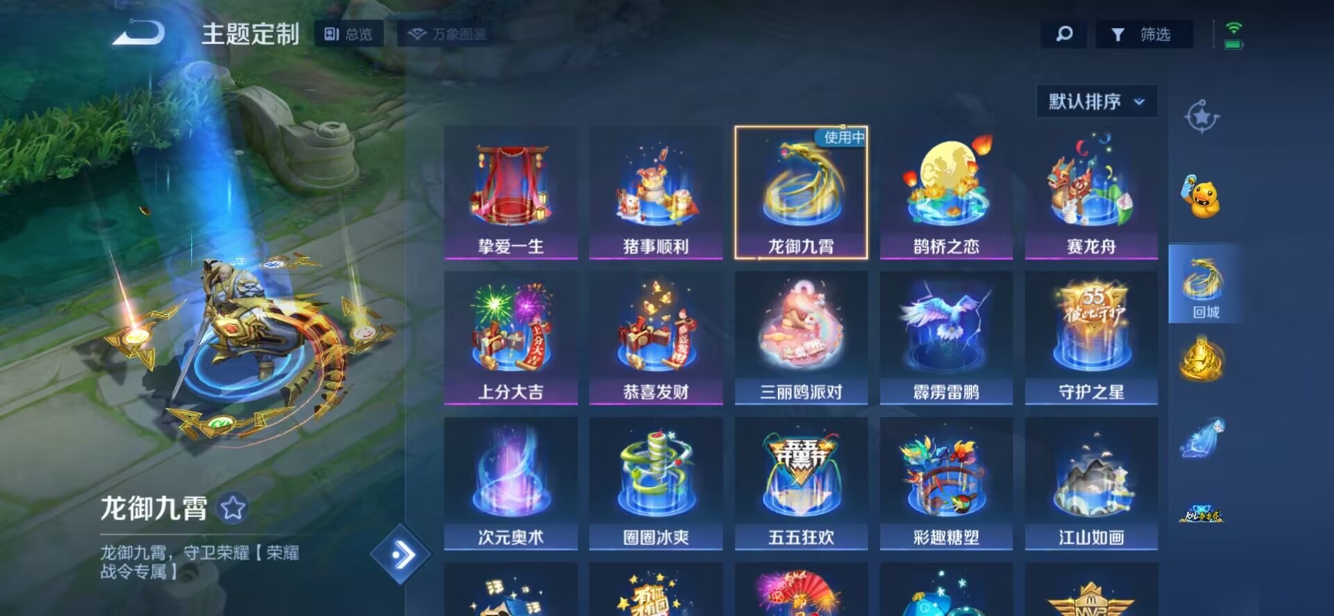 刘邦夺宝奇兵,夏侯惇朔风刀,老夫子醍醐杖,沈梦溪星空之诺,盾山御銮,曹操烛龙,典韦穷奇,牛魔御旌,项羽苍威无极,鲁班七号狮舞东方,吕布猎兽之王,镜青焰无极,元歌云间偶戏,明世隐疑决卦,马可波罗暗影游猎,白起狰,鬼谷子原初探秘者,女娲朔望之晖,狄仁杰万华元夜,嬴政白昼王子,芈月重明,程咬金演武夺筹,李元芳银河之约,弈星混沌棋,米莱狄御霄,钟馗神迹守卫,钟馗驱傩正仪,狂铁御狮,太乙真人饕餮