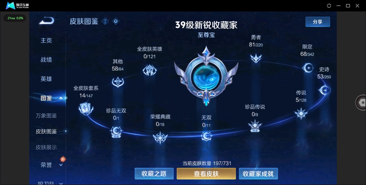 - PX_2053869-安卓Q 【可二次】 英雄数量:124 皮肤数量:301 贵族等级:贵族V8 荣耀典藏3 珍品传说1 传说品质16 史诗品质79九霄神辉 无限飓风号 弑枪猎影 时之奇旅孙策 乞巧织情 仲夏夜之梦 猫影幻舞 云霓雀翎 淬星耀世 齐天大圣 炽阳神光 炽翼辉光 音你心动男 绛天战甲 启明星使 黄金射手座 地狱之眼 时之恋人男 胖达荣荣 鸣野蒿 至尊宝 神威 冰锋战神 天才门将 游园惊