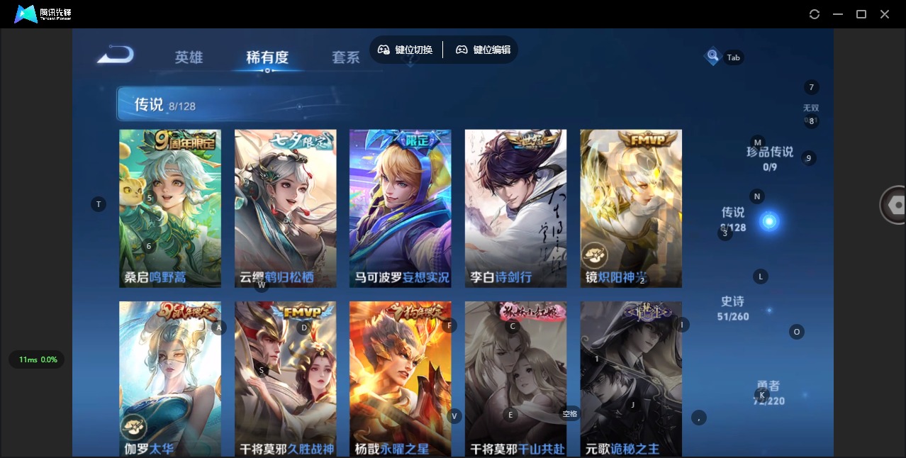 - [11605474]V4 2传说 114英雄 86皮肤 可修改实名 优质装备:一念神魔,地狱之眼 珍宝阁皮:蔷薇恋人 限定皮:李小龙 史诗皮:冰冠公主,女仆咖啡,水果甜心,暗隐猎兽者,月团寄思,水晶猎龙者,曙光守护者,金属风暴,鹰眼统帅,魅力维加斯