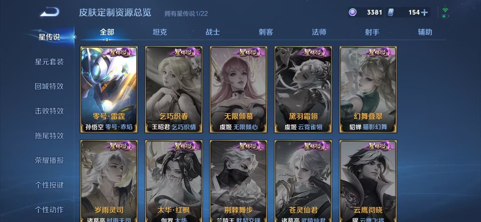 - [11571833]V8 3典藏 1珍品传说 20传说 125英雄 351皮肤 可修改实名 荣耀水晶:最初的交响(伽罗典藏),鸣剑·曳影,幻阙歌(貂蝉典藏) 珍品传说:时之奇旅-孙策 传说皮:乘龙·铭钟鼎(赵云年限),黄金狮子座,仲夏夜之梦(大飞蛾),地狱之眼,云霓雀翎,一念神魔,猫影幻舞,炽阳神光,时之恋人-刘备(电焊工),超时空战士-狄仁杰,花朝如约(花篮子),挚爱之约 珍宝阁皮:万物之道,蔷薇恋人,女武神 限定皮:愿照·众生和(妲己年限),陌上桑,鸣野蒿,武陵仙君(小桃花),异界灵契(白毛香),傲雪梅枪,补天,魔法小厨娘,飞衡(韩信年限),遇见飞天,高山流水,五谷丰年,游园惊梦,李小龙,孙行者,青春决赛季,匿光追影者,女儿国国王,寅虎·瑞焰(虎皮蛋子),寅虎·心曲(虎婆),百木心枪,玉兔公主,启示之音 史诗皮:星界战将,茶境仙,鸭鸭历险记-刘禅,灵蛊蚀心,龙之律动,石田雨龙,百相守梦-百里守约,战舞者,芈月浮光幕影,怒海争锋,蔬乡物语(鲁班七号),琥珀纪元伽罗,化蝶舞,破空之剑,紫霞仙子,电玩小子(小书包),黄金分割率,特工魅影,千年之狐,永昼,江河有灵,高渐离燃音魔法,百解令(蒙犽),蒙恬荣光圣徽,冰冠公主,青蛇,偶像歌手,无限星赏官,白蛇,电玩·爆裂旋风,末日机甲-吕布,猫狗日记-孙策,时之恋人-孙尚香,乱世虎臣,节奏热浪,修罗,女仆咖啡,摇滚巨星,水果甜心,绅士熊喵,天才门将,星夜王子,心灵骇客,时之奇旅-安琪拉,功夫厨神,德古拉伯爵,暗隐猎兽者,幽灵船长,鬼剑武藏,心灵战警,乐园奇幻夜,天秀·启明,舞动绿茵,地狱岩魂,诗语江南,纤云弄巧,拒霜思,缤纷独角兽,乘风破浪,逐浪之夏,月团寄思,水晶猎龙者,曙光守护者,箭羽风息,金属风暴,圣诞狂欢,圣诞恋歌,鹰眼统帅,暗夜贵公子,魅力维加斯,黎明之约,雪上飞焰,无心,未来纪元-赵云
