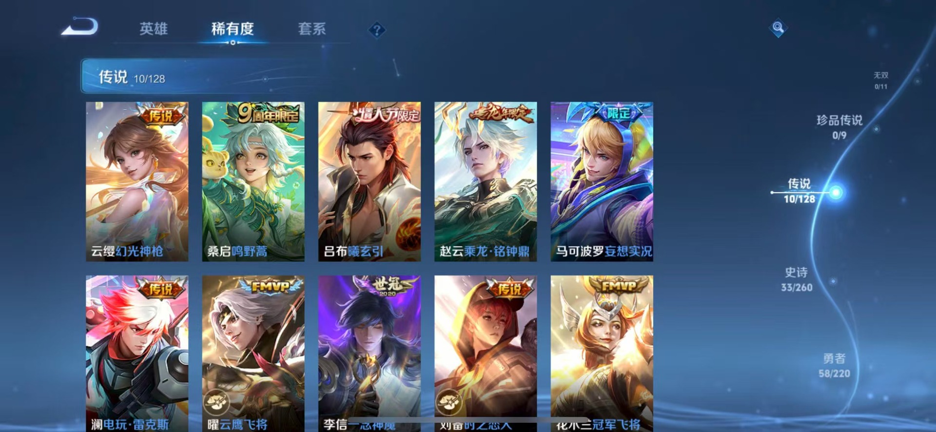 - [12295044]V7 1典藏 5传说 123英雄 256皮肤 可修改实名 女号 优质装备:全息碎影(猴子典藏),炽阳神光,末日机甲-孙尚香(绿蚂蚱),地狱火,时之恋人-刘备(电焊工) 珍宝阁皮:优雅恋人,蔷薇恋人,玩趣恶龙 限定皮:至尊宝,白虎志(电光耗子),遇见飞天,高山流水,五谷丰年,游园惊梦,梁祝,天狼狩猎者,李小龙,朱雀志(守约年限),冰霜恋舞曲,玉兔公主 史诗皮:百相守梦-黄忠,紫霞仙子,电玩小子(小书包),黄金分割率,特工魅影,千年之狐,江河有灵,魅语,高渐离燃音魔法,蒙恬荣光圣徽,冰冠公主,晚萤,电玩·爆裂旋风,暗夜猫娘,龙骑士(小龙虾),末日机甲-吕布,猫狗日记-孙策,时之恋人-孙尚香,乱世虎臣,节奏热浪,女仆咖啡,水果甜心,绅士熊喵,天才门将,星夜王子,心灵骇客,功夫厨神,德古拉伯爵,幽灵船长,鬼剑武藏,心灵战警,舞动绿茵,地狱岩魂,繁星吟游(呼啦呼啦),乘风破浪,逐浪之夏,水晶猎龙者,箭羽风息,金属风暴,原初追逐者,圣诞狂欢,圣诞恋歌,鹰眼统帅,魅力维加斯,黎明之约,赏金猎手,未来纪元-赵云