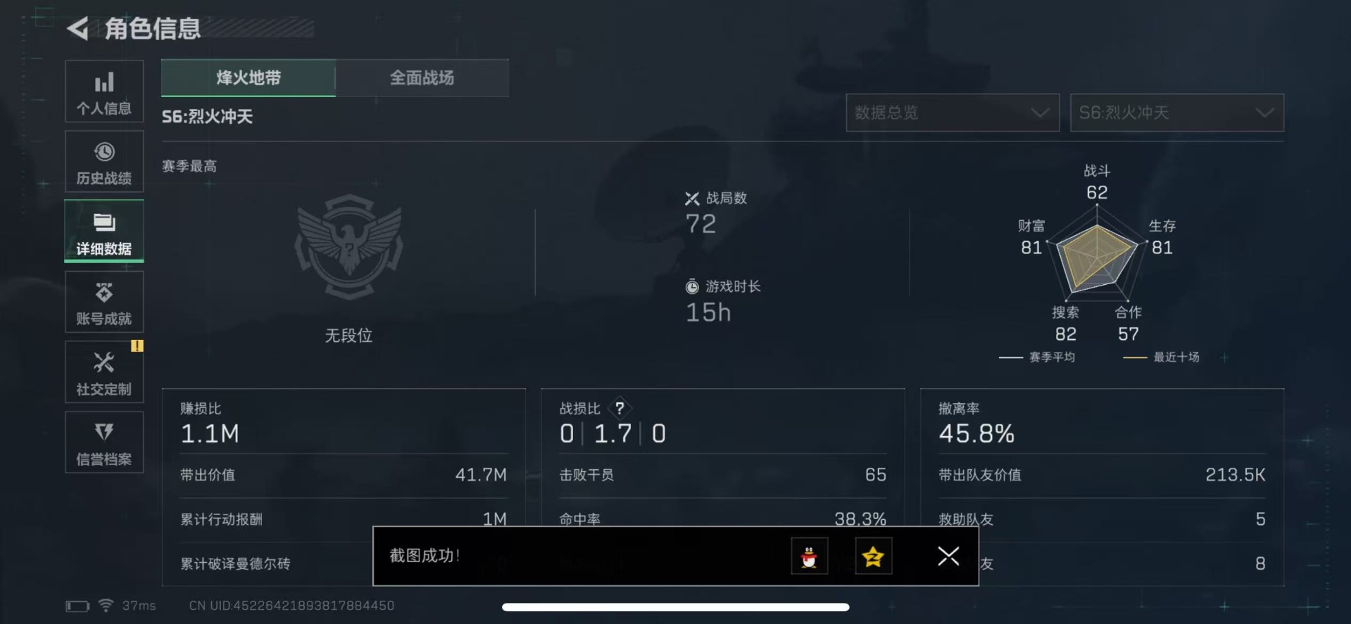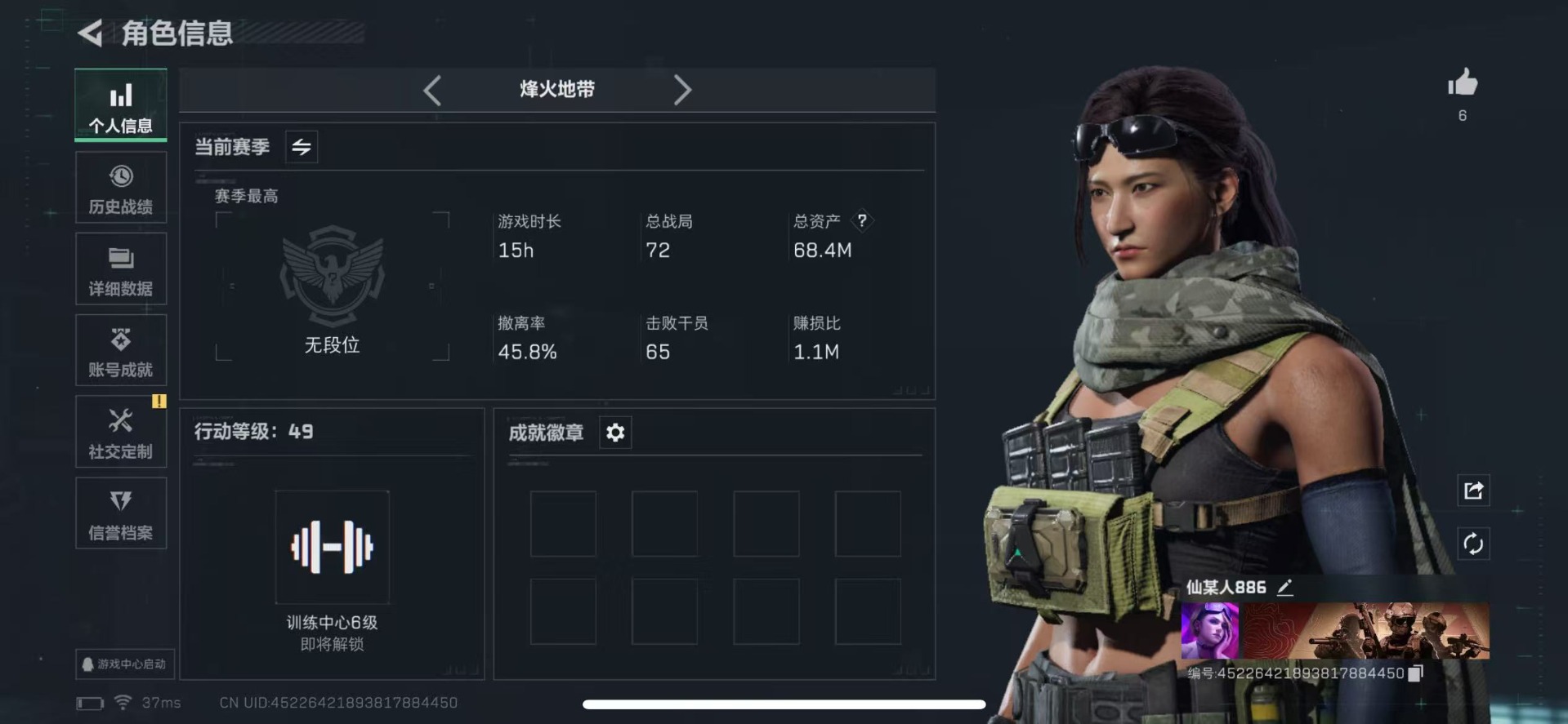 [11994219]总资产:68.4M 6传说枪械 哈夫币:17.008K 可二次 可修改实名 烽火地带段位:无段位 全面战场段位:无段位 传说武器皮肤:93R-捞点薯条,勇士冲锋枪-能天使-午夜邮差,Vector冲锋枪-能天使-午夜邮差,AWM狙击步枪-捞点薯条,腾龙突击步枪-捞点薯条,M4A1突击步枪-阿米娅 史诗武器皮肤:SCAR-H战斗步枪-囚徒,SV-98狙击步枪-囚徒,SV-98狙击步枪-林中猎手,P90冲锋枪-紧急戒备,MP5冲锋枪-深海恐惧