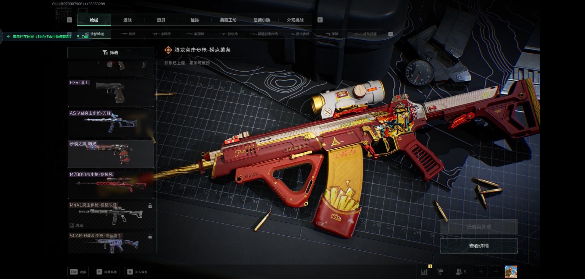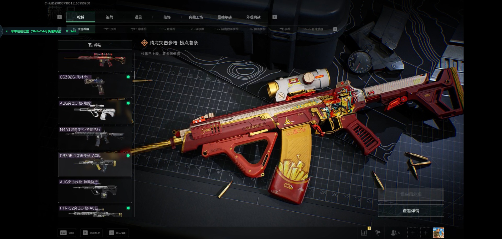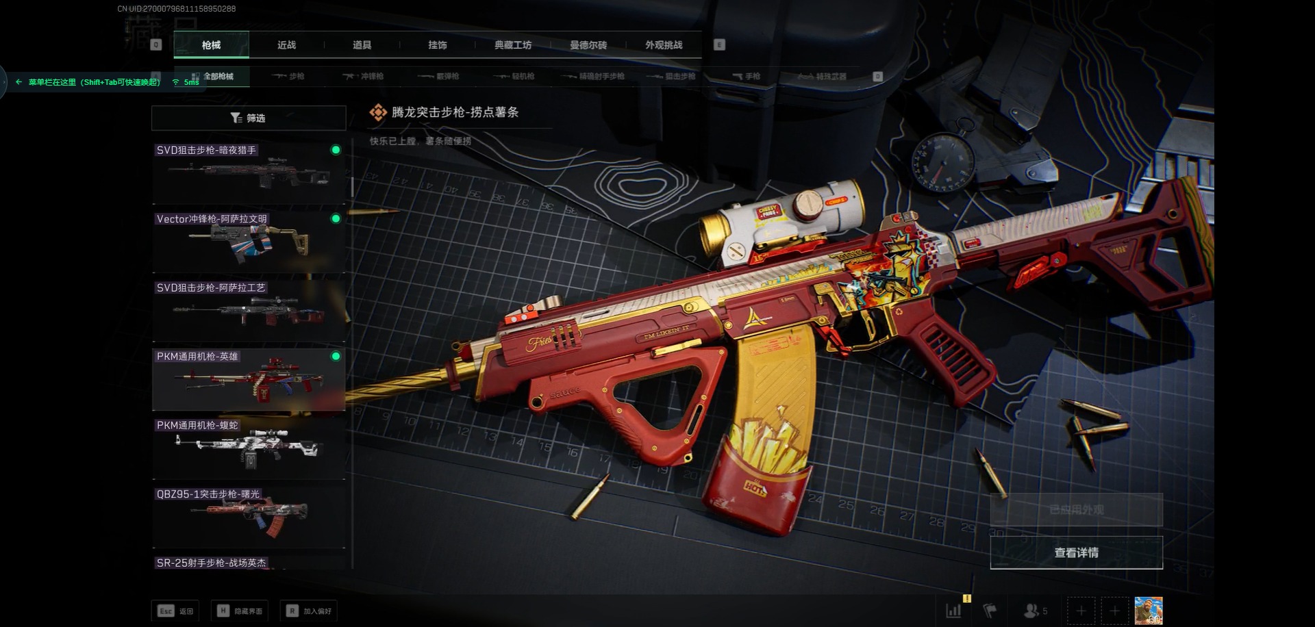 - PX_2102696-??/枪械8/装备155/战备104/王牌印记11/热力值44196/五级AKM-绿萝繁花/五级SCAR-L-锦绣绵绵/四级GROZA-镜光银凌/五级AUG-暖羊咩咩/五级M762-青锋波束/五级UMP45-量子极限/五级Kar98K-巳巳如意/六级M249-猪猪侠/角色-千金淑猫/角色-萨利娅/套装-摩登天骄/套装-巳巳如意/AKM-绿萝繁花/SCAR-L-锦绣绵绵/AUG