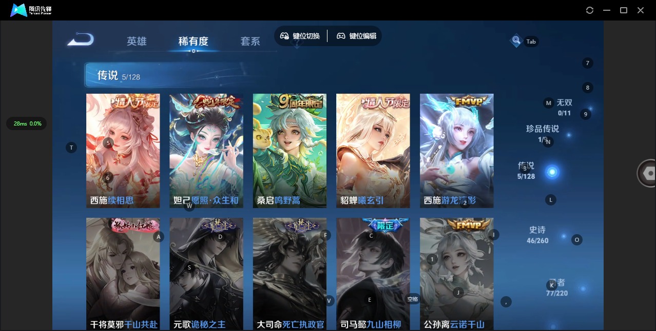 - [11516253]V6 6传说 123英雄 137皮肤 可修改实名 优质装备:冠军飞将,久胜战神,一念神魔,零号·赤焰 珍宝阁皮:蔷薇恋人,女武神 限定皮:鸣野蒿,五谷丰年,御风骁将(吕布年限),默契交锋-兰陵王,默契交锋-花木兰 史诗皮:紫霞仙子,黄金分割率,千年之狐,江河有灵,修罗,水果甜心,德古拉伯爵,幽灵船长,鬼剑武藏,缤纷独角兽,乘风破浪,金属风暴,圣诞恋歌,鹰眼统帅,无心