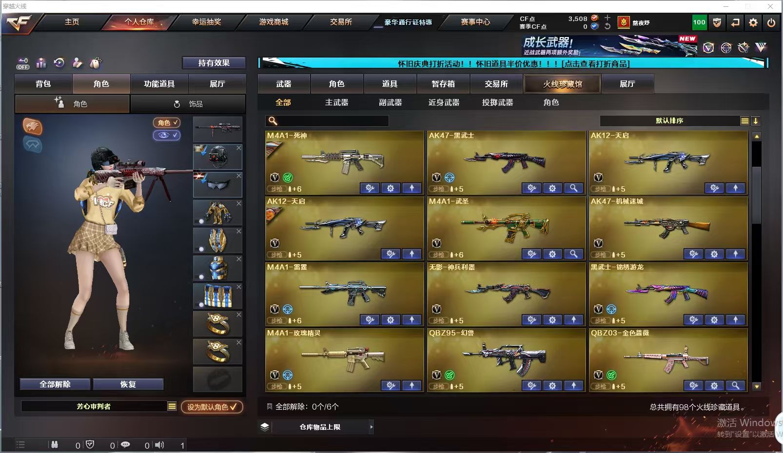 [11994474]可二次 可修改实名 排位资格:有 2王者武器 1炫金武器 94V武器 4V角色 12皮肤 可排位 新锐 武器:AWM-裁决,9A91-烈火,AK12-天启,barrett-金色蔷薇,QBZ03-金色蔷薇,AK47-机械迷城,黑武士-锦绣游龙,沙鹰-幻兽,闪光弹-幻兽,无影-神兵利器,龙啸,闪光弹-雷霆,M4A1-雷霆,M4A1-黑龙,Barrett-毁灭,死亡之眼,Glock18-武圣,雷霆之契,M4A1-黑骑士,烟雾弹-幻兽,QBZ95-幻兽,AWM-天龙,M4A1-玫瑰精灵,雷霆之锋,加特林-炼狱,超新星-悦享,汤姆逊-烈龙,Barrett-极光,擎天,高爆手雷-幻兽,女皇利刃-幻兽,炫金黑龙,高爆手雷-雷霆,破空枪刃,烟雾弹-雷霆,AK47-黑武士,M4A1-千变,屠龙,M4A1-雷神,RPK-盘龙,M4A1-死神,AK47-火麒麟,M4A1-武圣,沙鹰-天神,王者之怒-觉醒版,王者之魂,沙鹰-修罗,麒麟刺