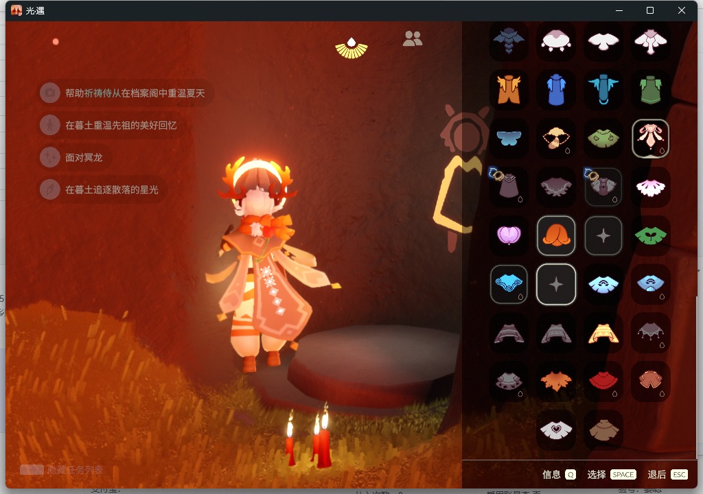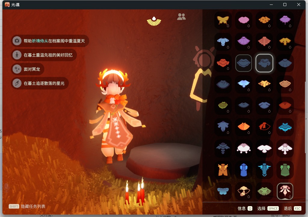 - [11878616]【毕业图】晨岛,云野,雨林,霞谷,暮土,禁阁 【毕业季】梦想季,集结季,小王子季,风行季,潜海季,表演季,破晓季,欧若拉,追忆季,夜行季,拾光季,归巢季 【蜡烛】964 【爱心】83 【稀有礼包】瑞气服饰,女巫裙,巫树犄角,圣诞鹿角,巫师帽,贝壳发饰,兔子发饰,大橘大利,四叶草头饰,TGC斗篷黑,创始人斗篷,小王子斗篷,星球斗篷,欧若拉之翼,海龟斗篷,蝙蝠斗,蛛丝斗篷,瑞雪斗篷,绊爱斗,粽叶斗篷,中秋灯笼,瑞气纸伞,花憩茶桌,狐狸背包,冥龙南瓜,雪花水晶球 【毕业物品】凤凰面具,凤凰斗篷,队长面具,双耳锅帽子,小号,斜边队长斗篷,小王子发型,小王子套装,玫瑰花,多羽发饰,羽袖长袍,潜水面具,单边小辫,暗红斗篷,帝企鹅发,黄眉企鹅面具,燕尾斗篷,双翼遥鲲斗,冥龙斗篷,留辫蘑菇头,高领舞服,透明蝶翼斗,肩带,追忆之书,棕熊面具,绒毛斗篷,西部帽,粗框眼镜,季卡相机,五塑彩带斗,五塑彩羽发 【热门复刻】绿芽,海洋斗,击剑裤,武士裤,正太头,虚荣,背带裤,搓澡巾,花环长发,红耳机,箬笠,军帽,雨伞,高音钢琴,白金斗篷,黑金斗篷,红金斗篷,黄鼠狼面具